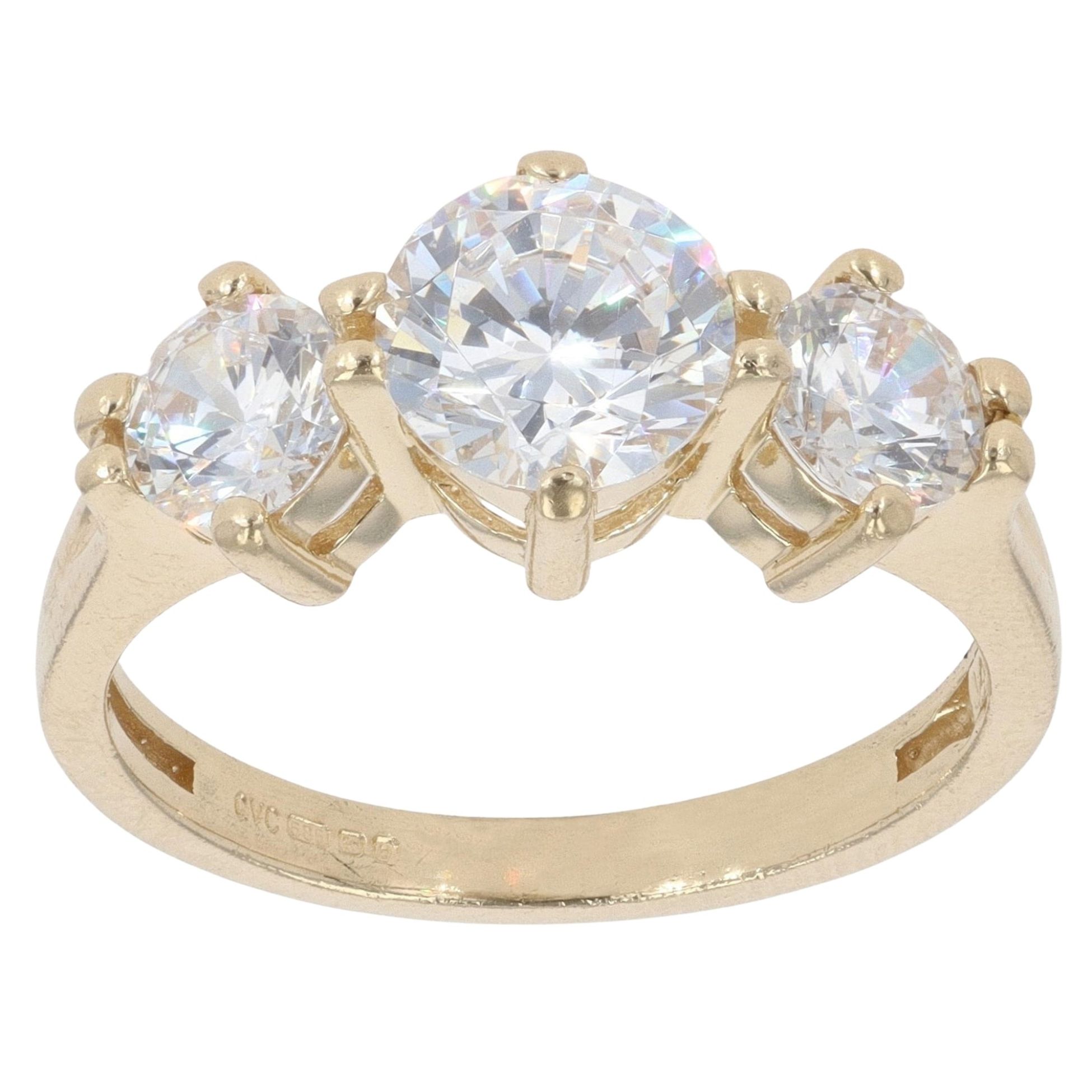 14ct Yellow Gold Cubic Zirconia Three Stone Ring