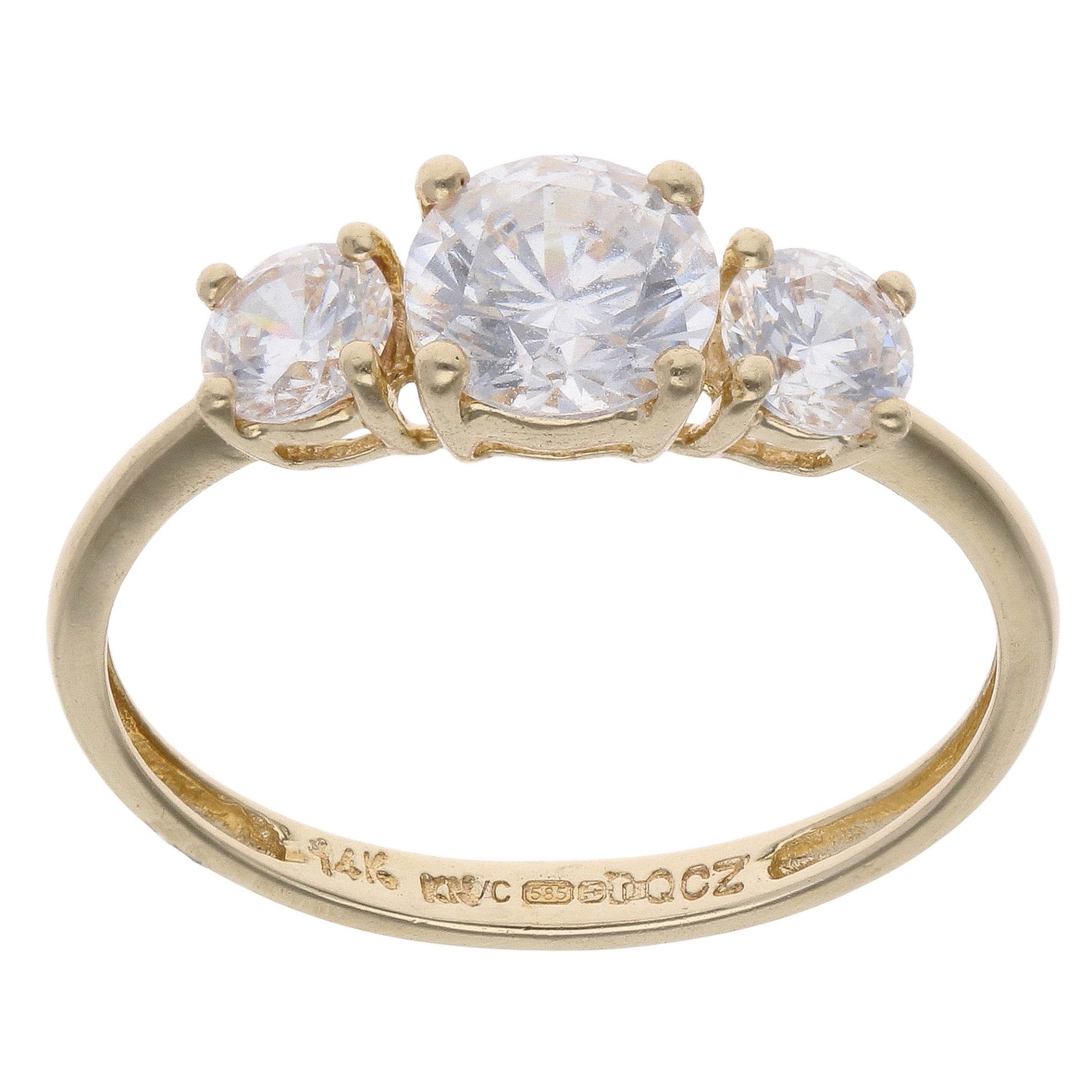 14ct Yellow Gold Cubic Zirconia Three Stone Ring