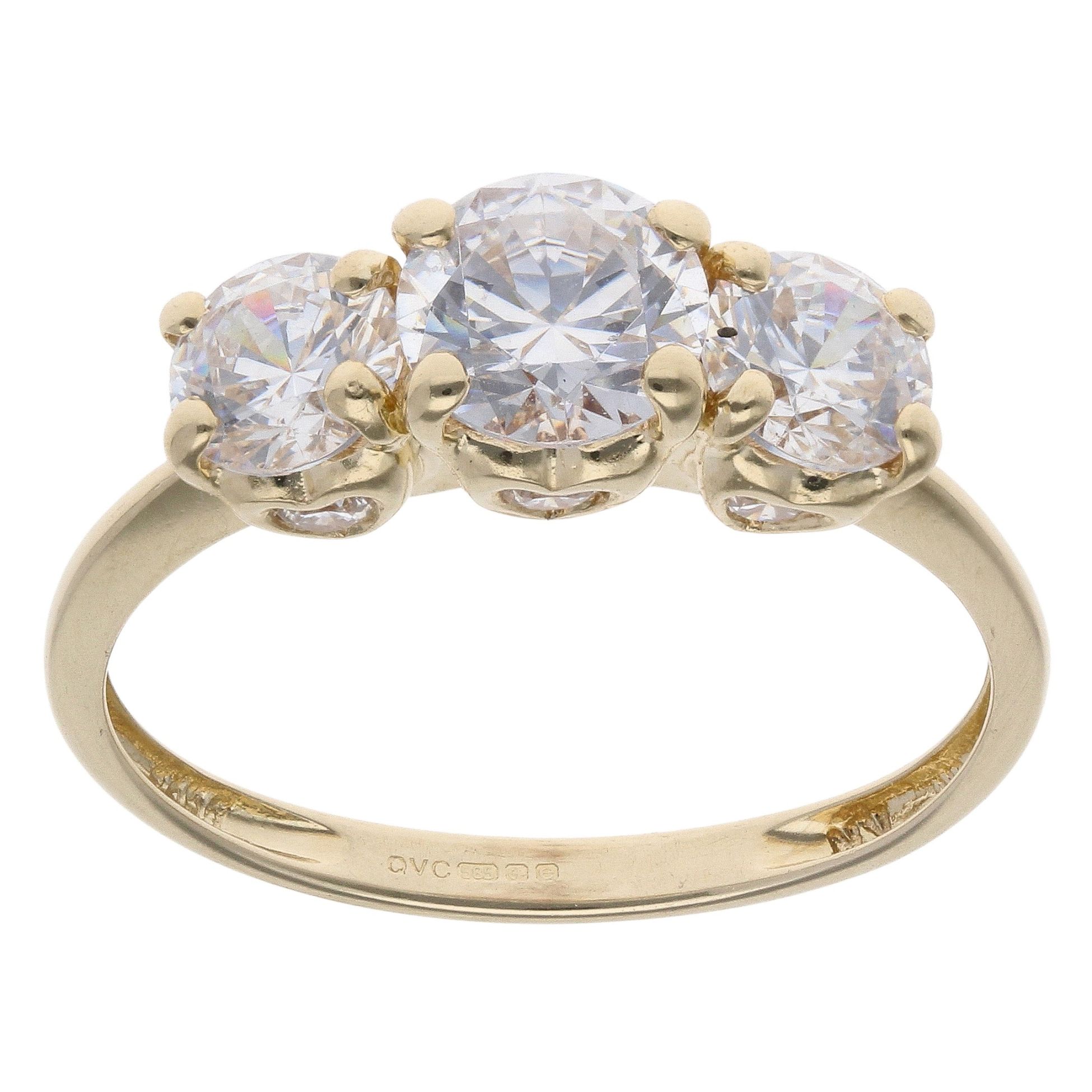 14ct Yellow Gold Cubic Zirconia Three Stone Ring