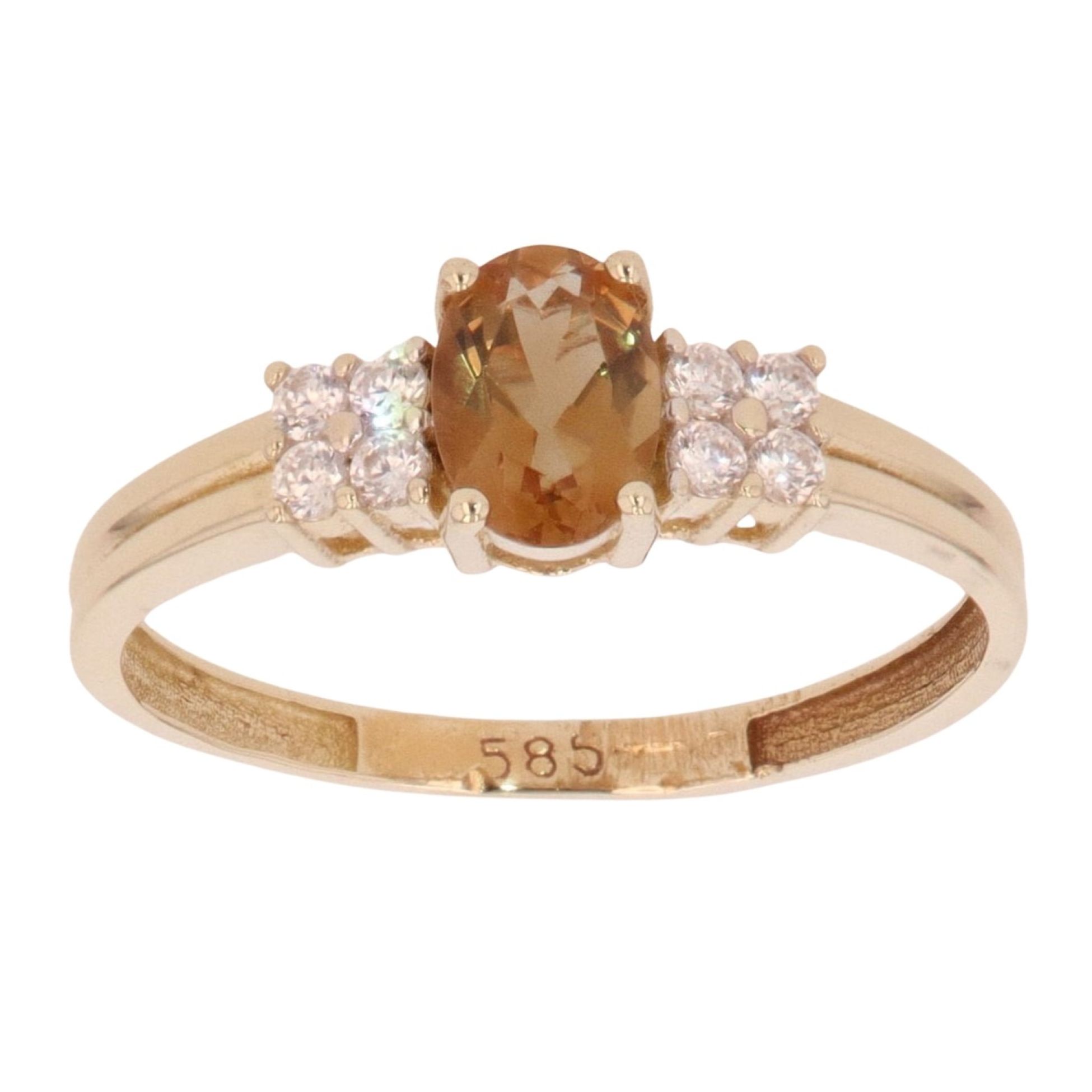 14ct Yellow Gold Green Beryl And Cubic Zirconia Ring