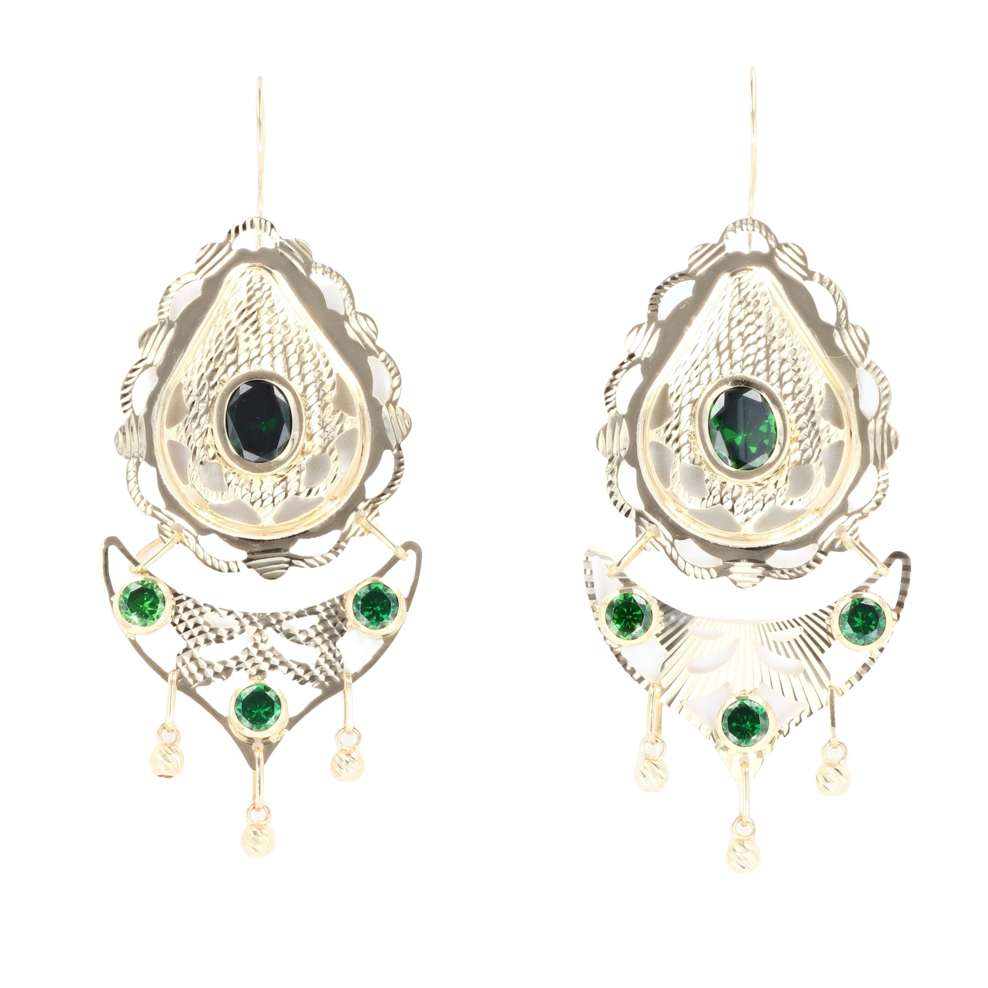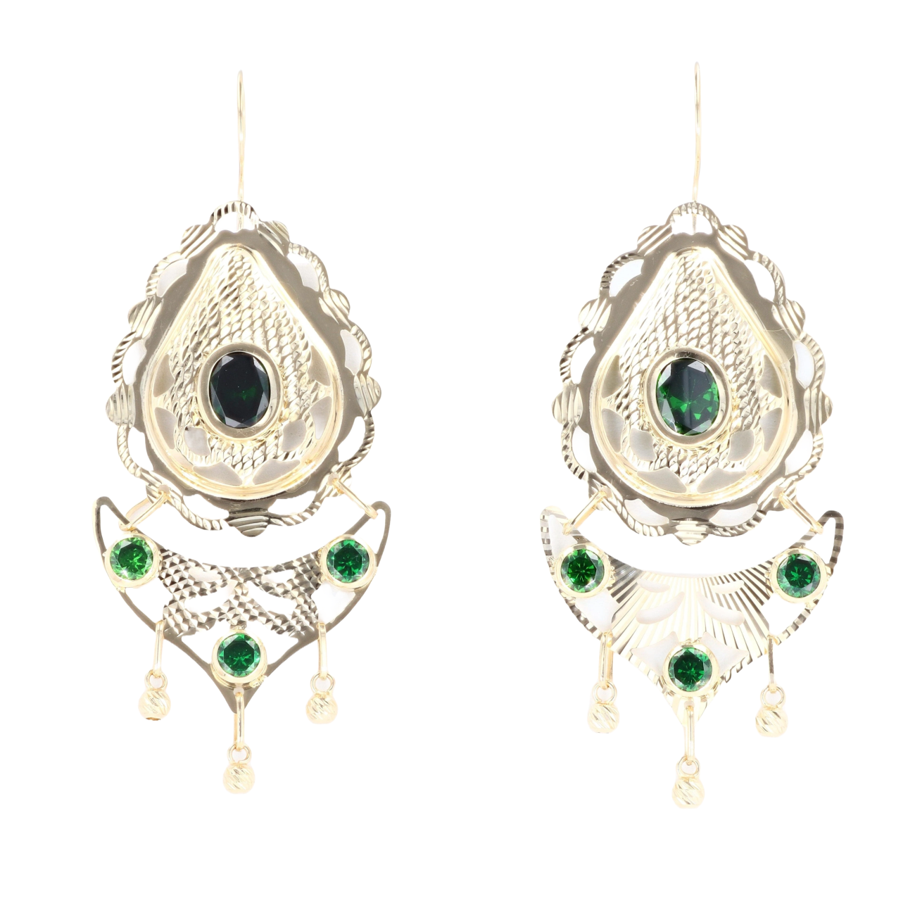 14ct Yellow Gold Green Gemstone Drop Earrings