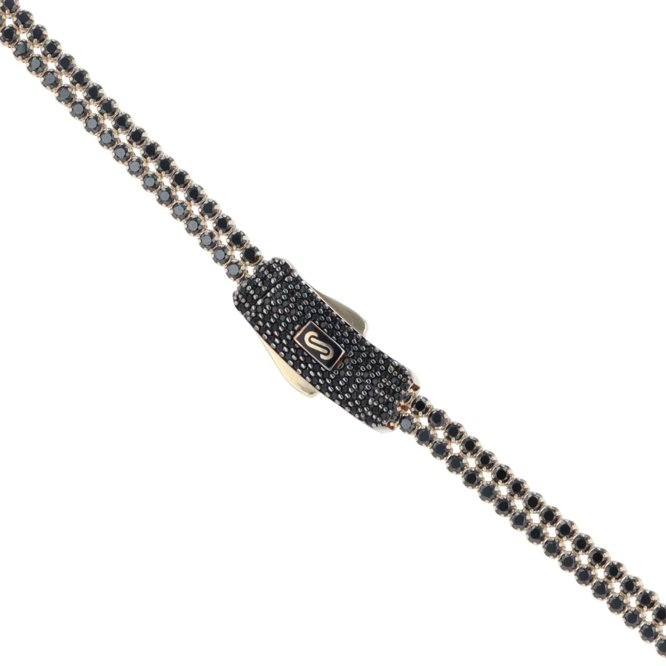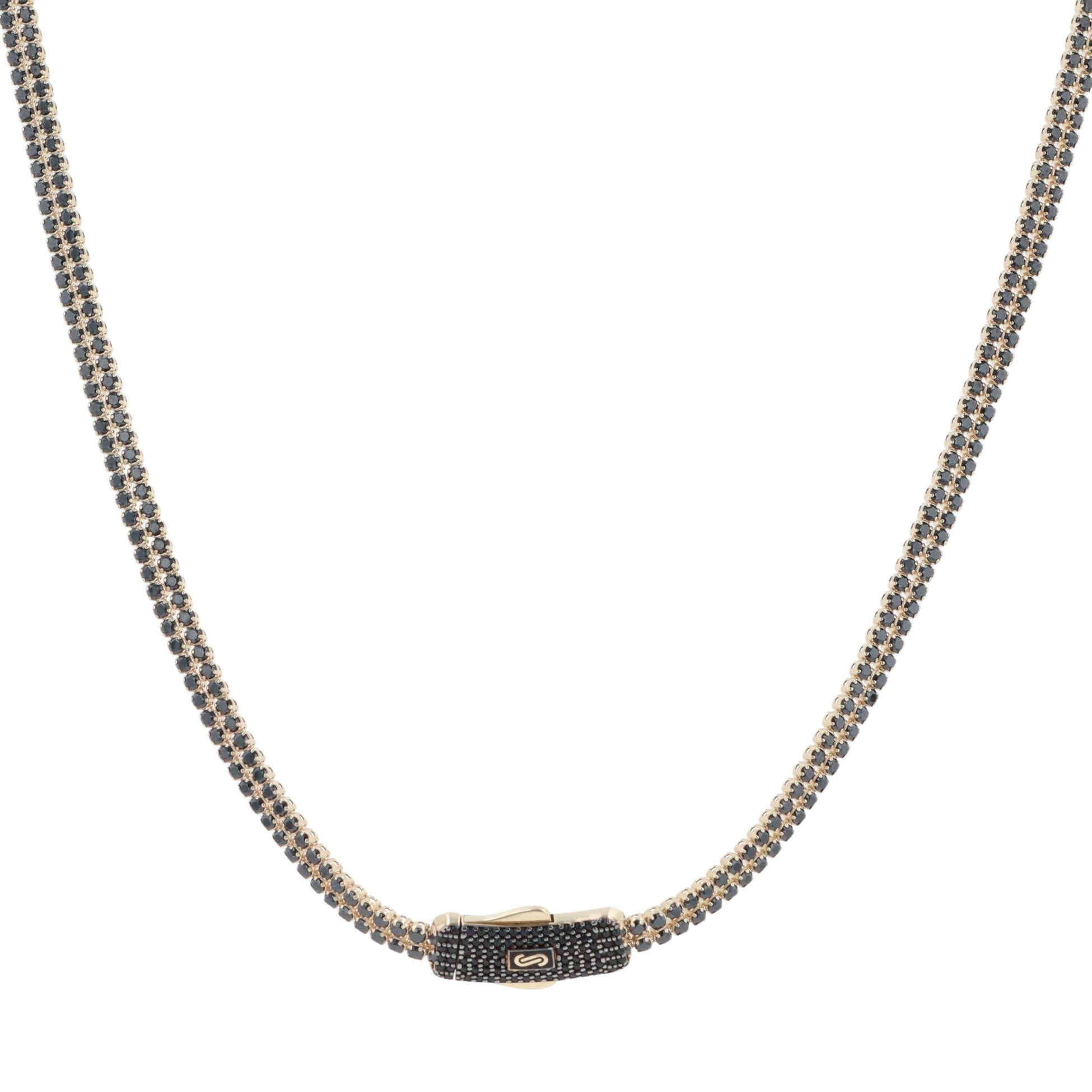 14ct Yellow Gold Monaco Agua Black Pave Lock Fancy Chain 18"