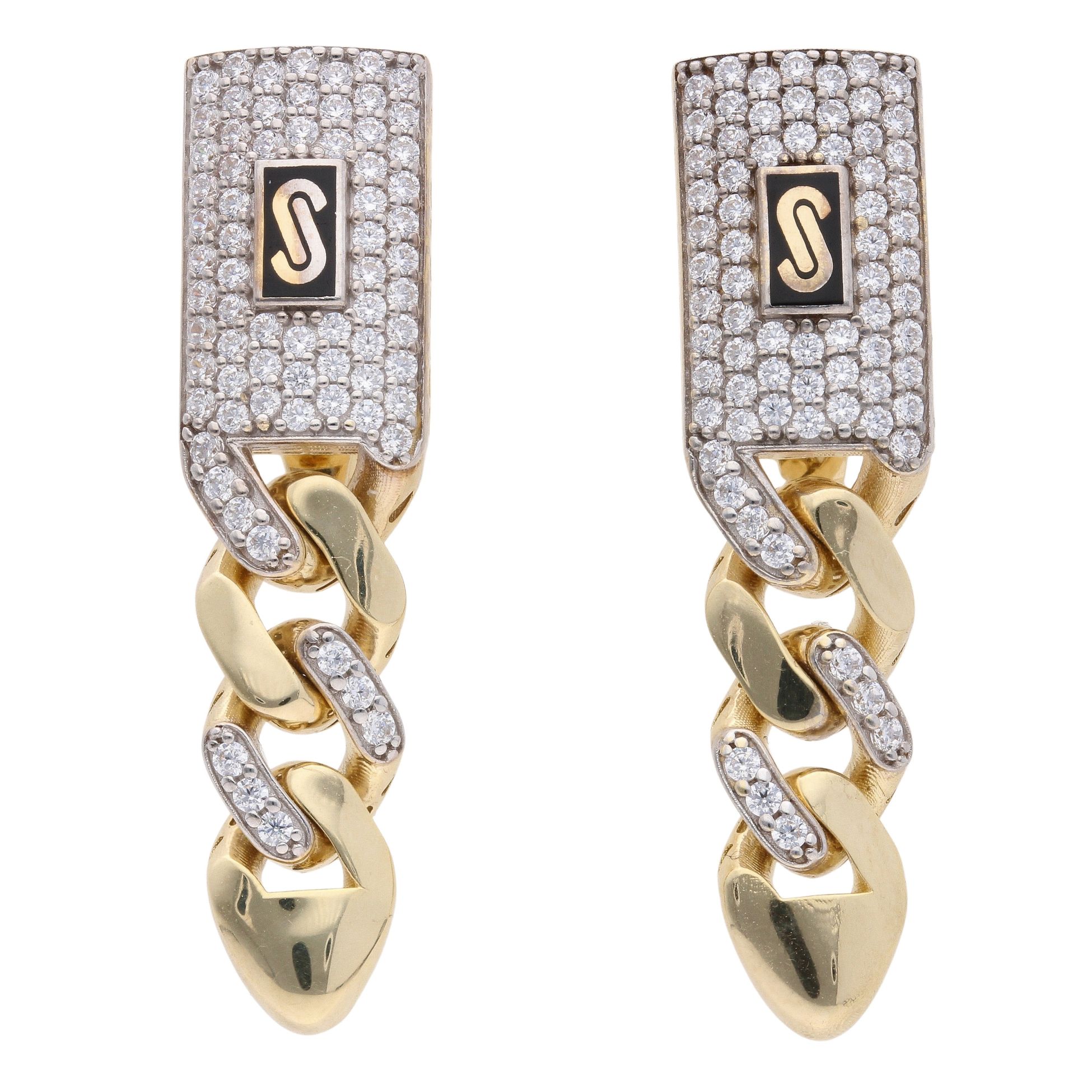 14ct Yellow Gold Monaco Alternate Cubic Zirconia Pave Drop Earrings