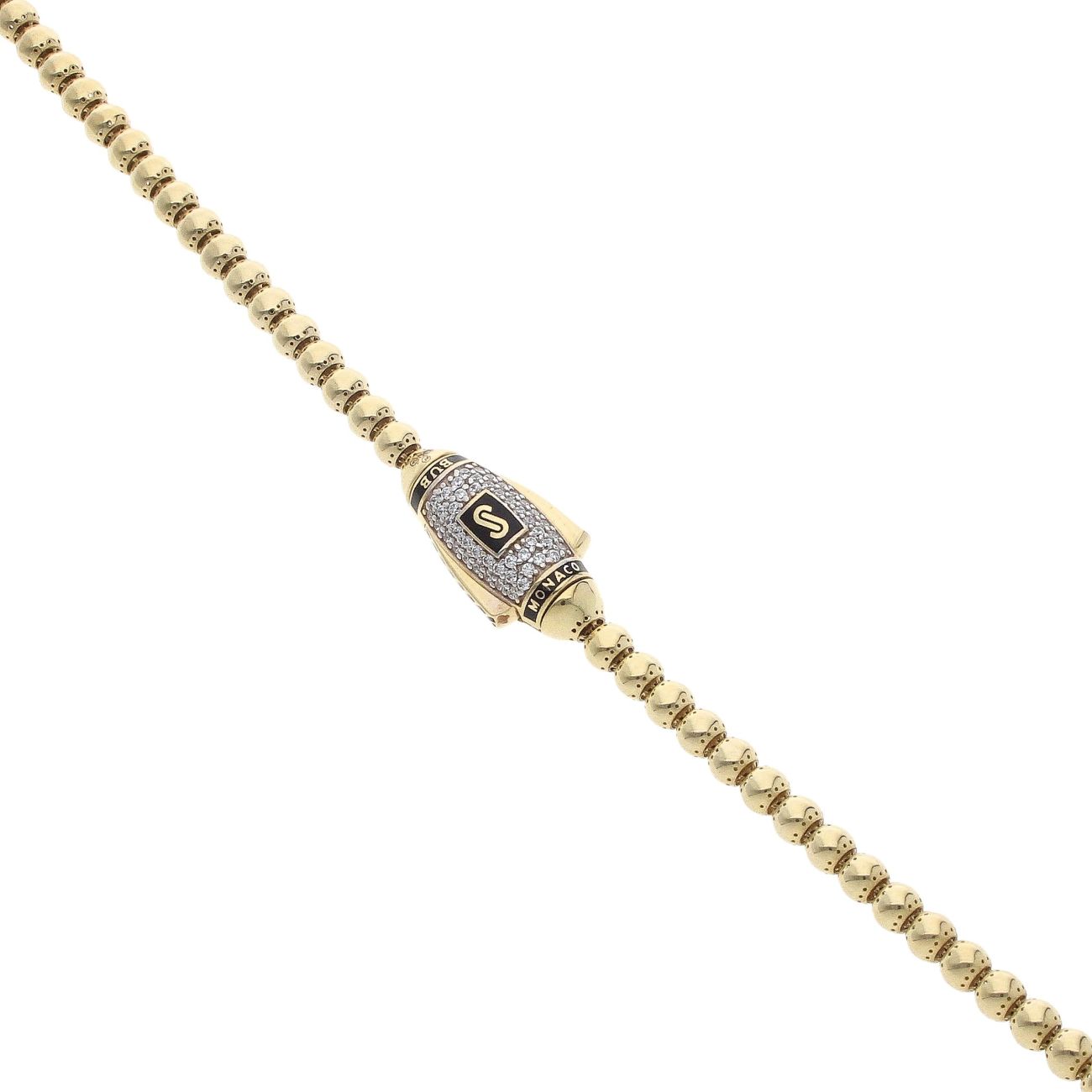 14ct Yellow Gold Monaco Beaded Cubic Zirconia Pave Lock Chain 18"