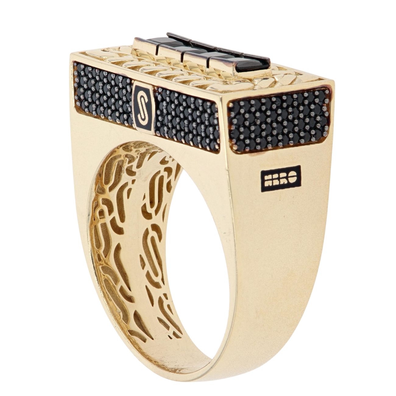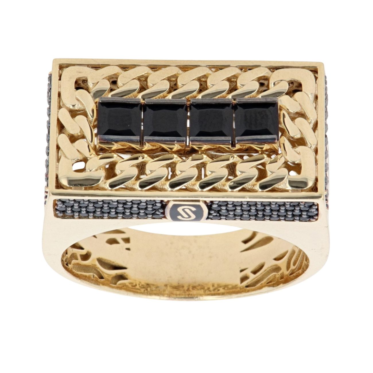 14ct Yellow Gold Monaco Black Cubic Zirconia Signet Ring