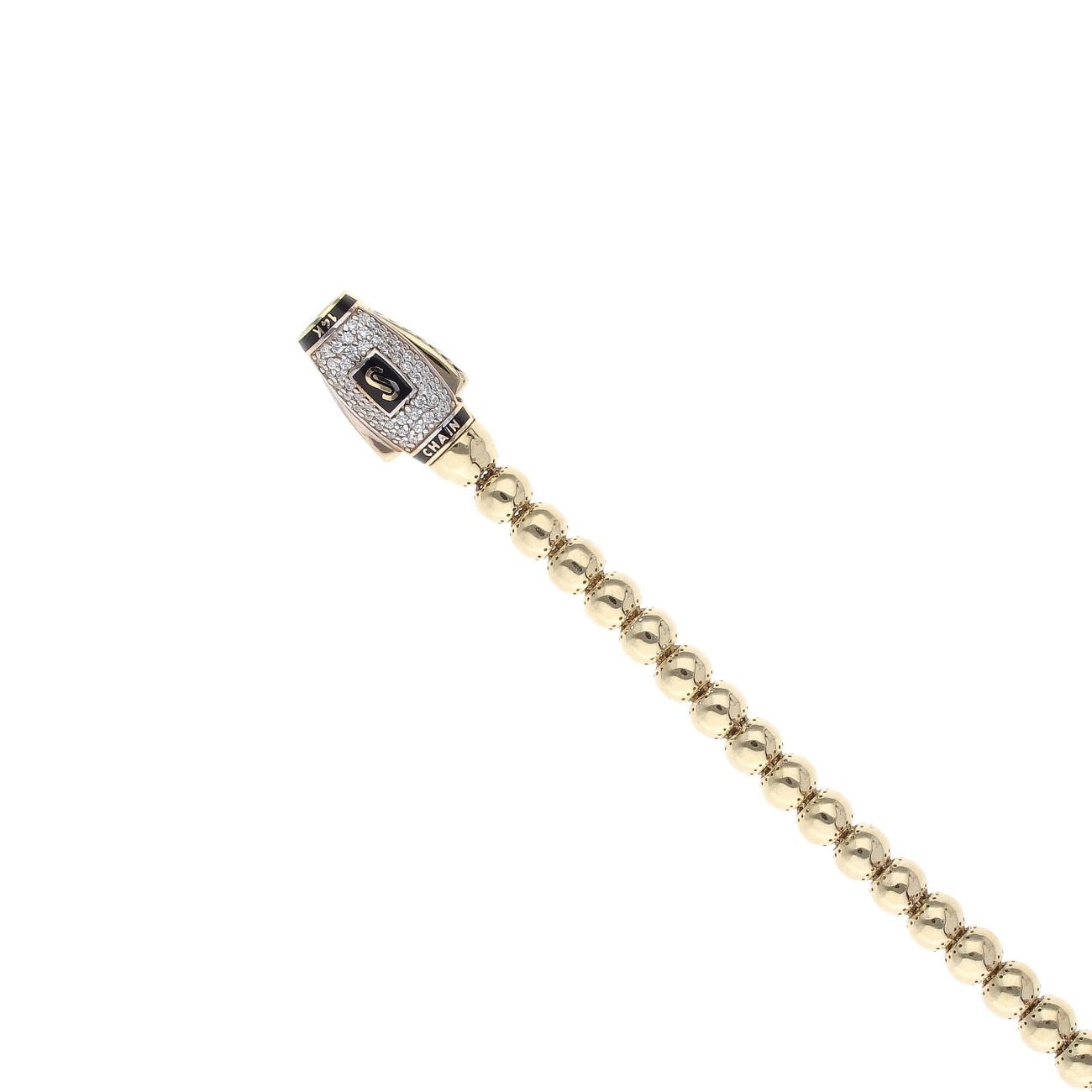 14ct Yellow Gold Monaco Bub Pave Lock Bead Bracelet 8"