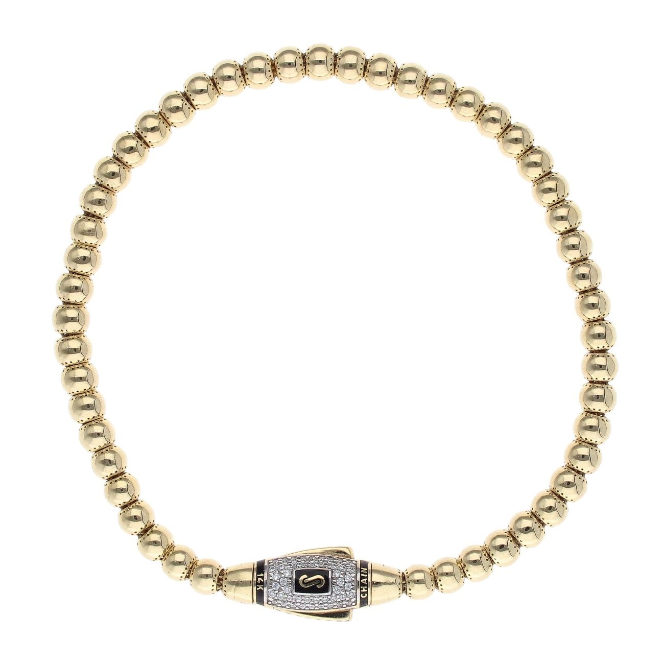 14ct Yellow Gold Monaco Bub Pave Lock Bead Bracelet 8.5"