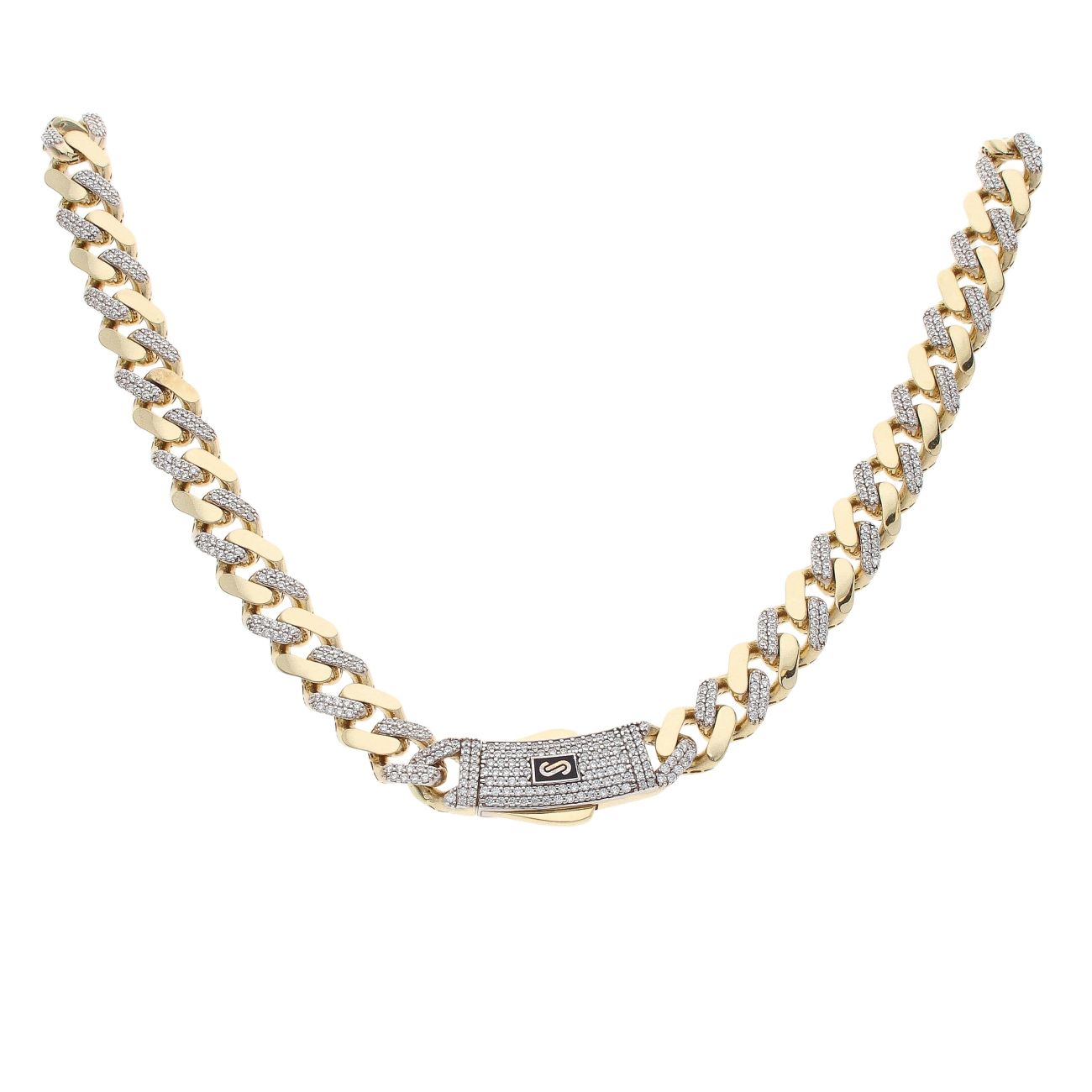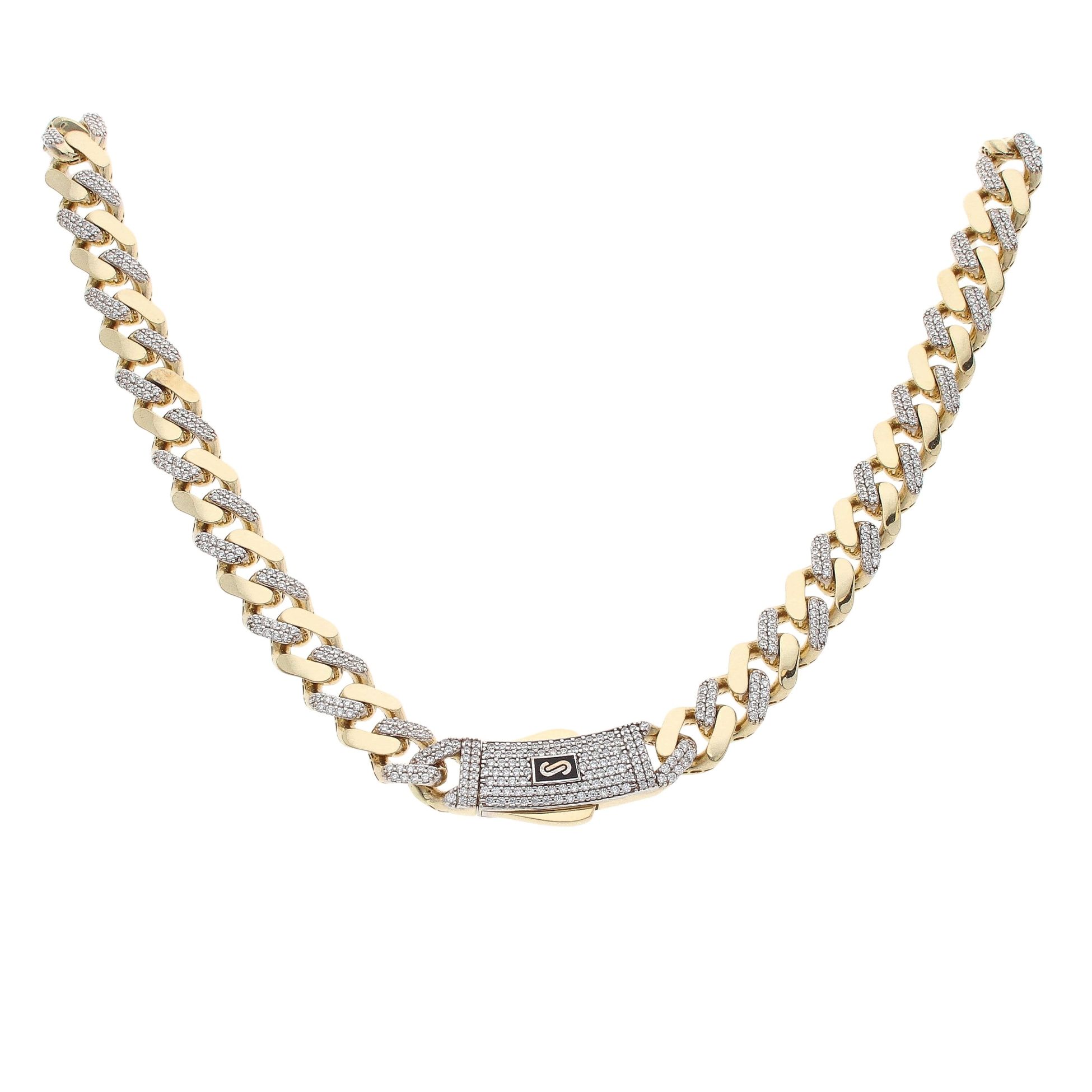 14ct Yellow Gold Monaco Classic Alternate Pave Lock Curb Chain 20"