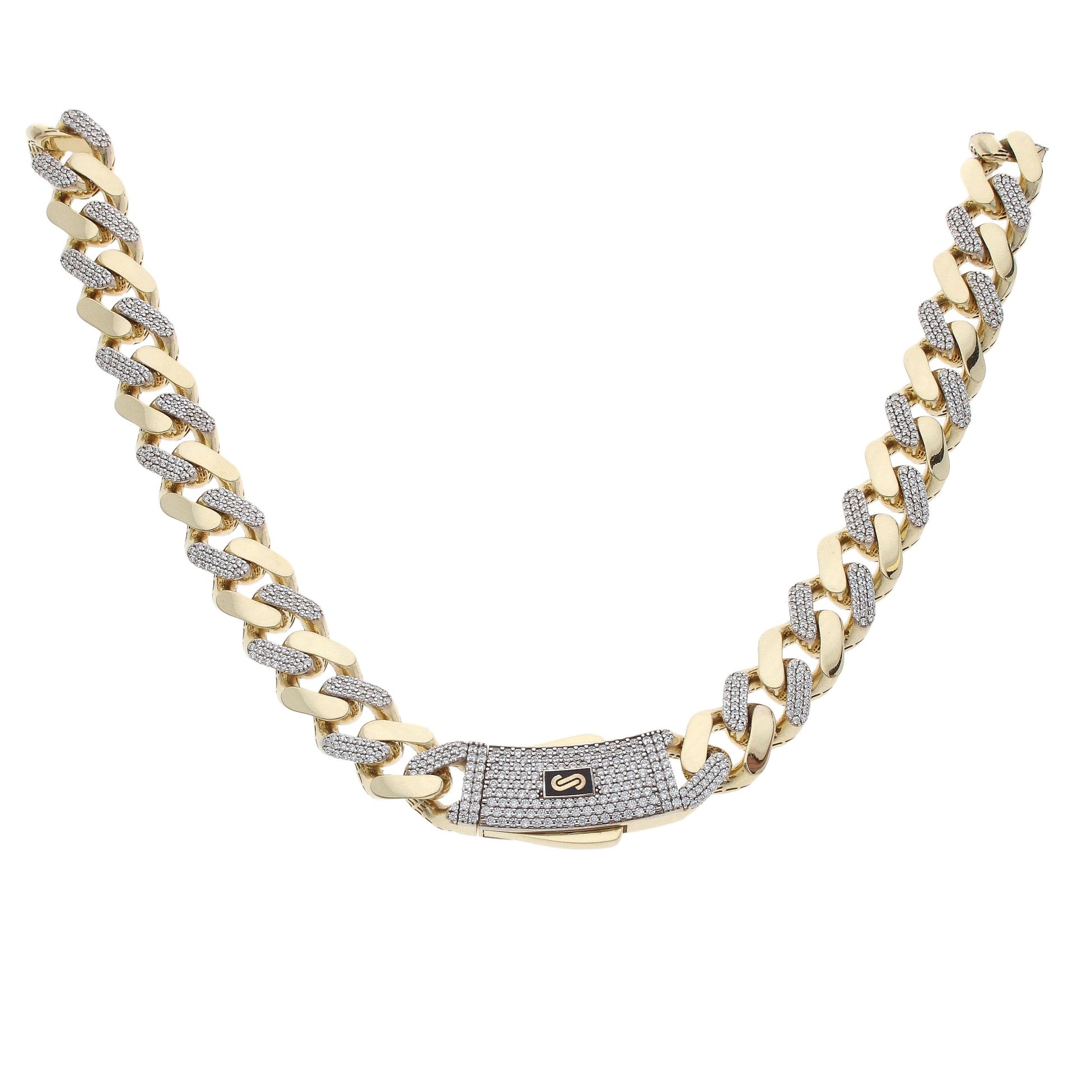 14ct Yellow Gold Monaco Classic Alternate Pave Lock Curb Chain 22"