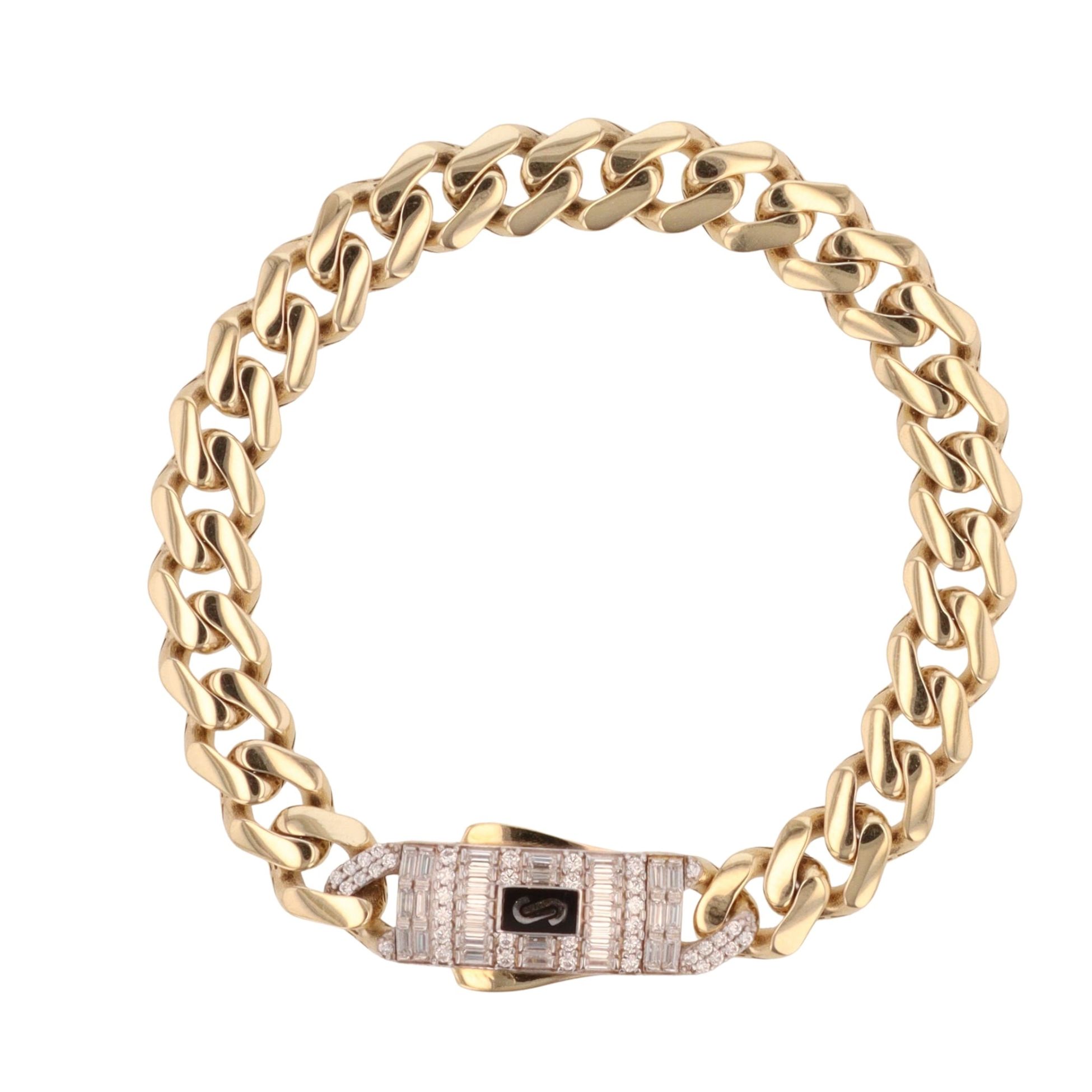 14ct Yellow Gold Monaco Classic Baguette Pave Lock Curb Bracelet 6.5"