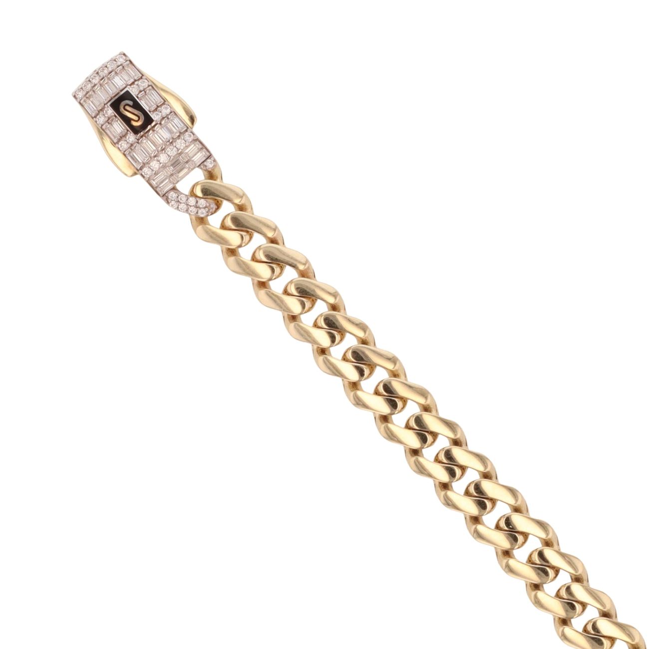 14ct Yellow Gold Monaco Classic Baguette Pave Lock Curb Bracelet 7"