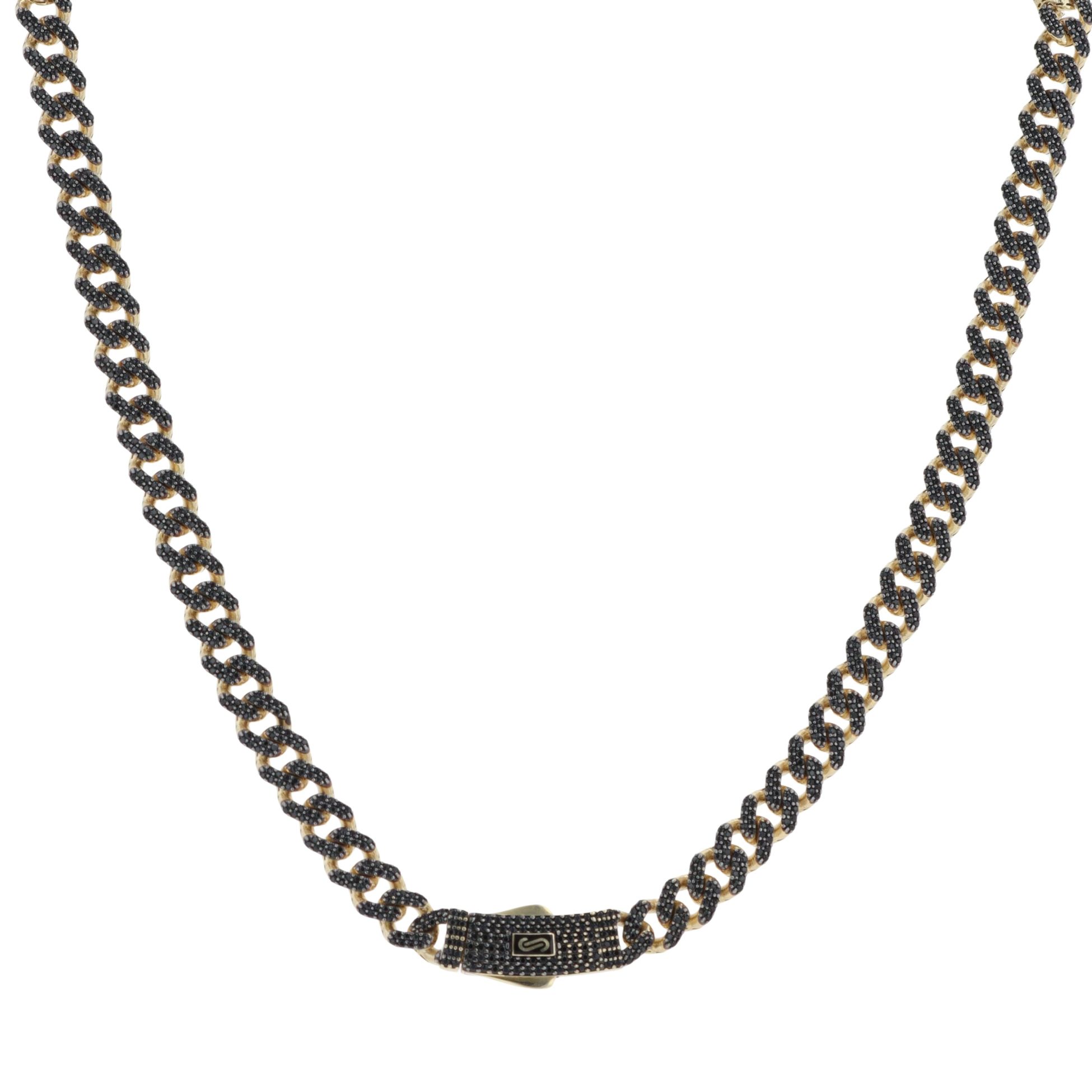 14ct Yellow Gold Monaco Classic Black Pave Lock Curb Chain 16"