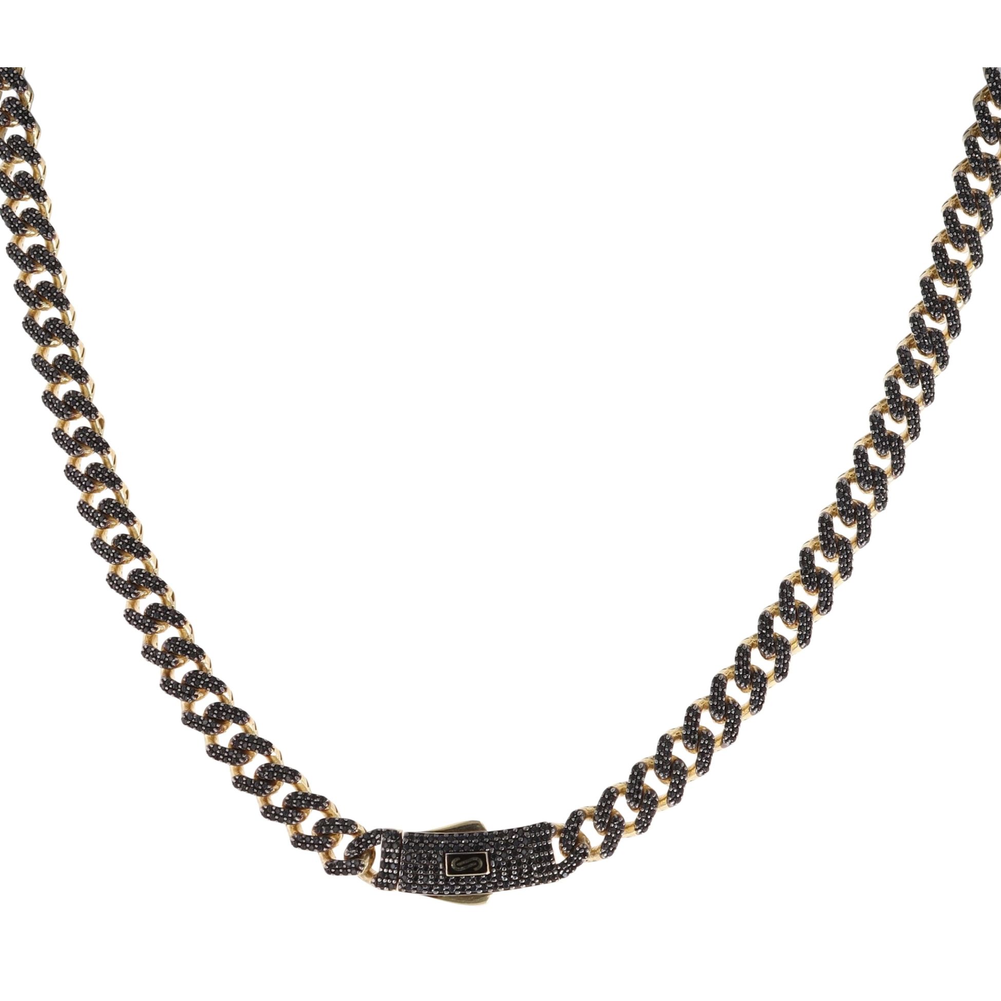 14ct Yellow Gold Monaco Classic Black Pave Lock Curb Chain 16"