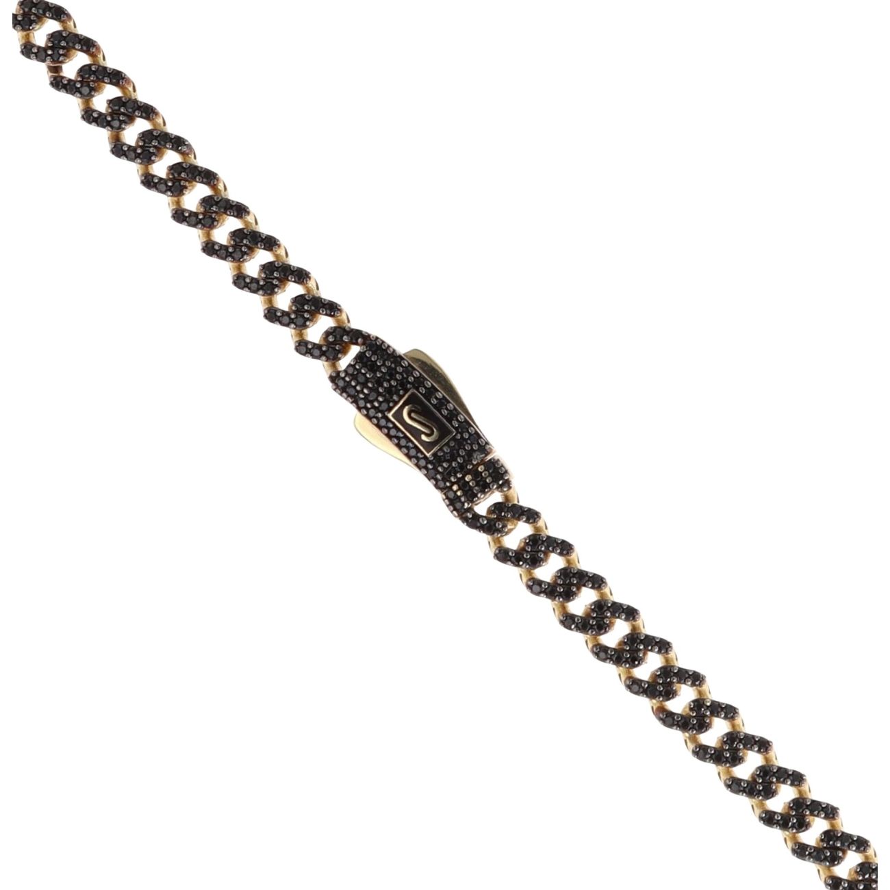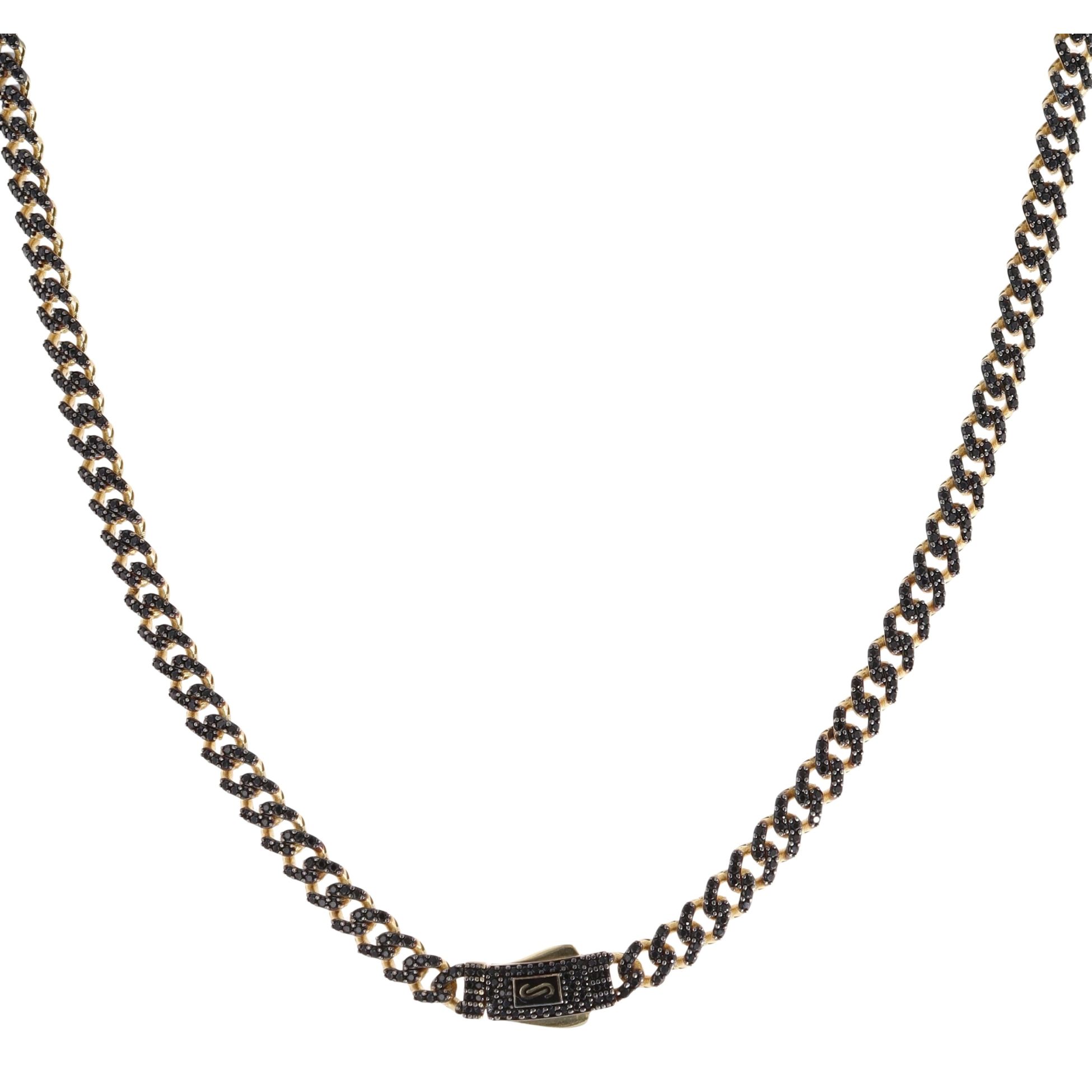 14ct Yellow Gold Monaco Classic Black Pave Lock Curb Chain 22"