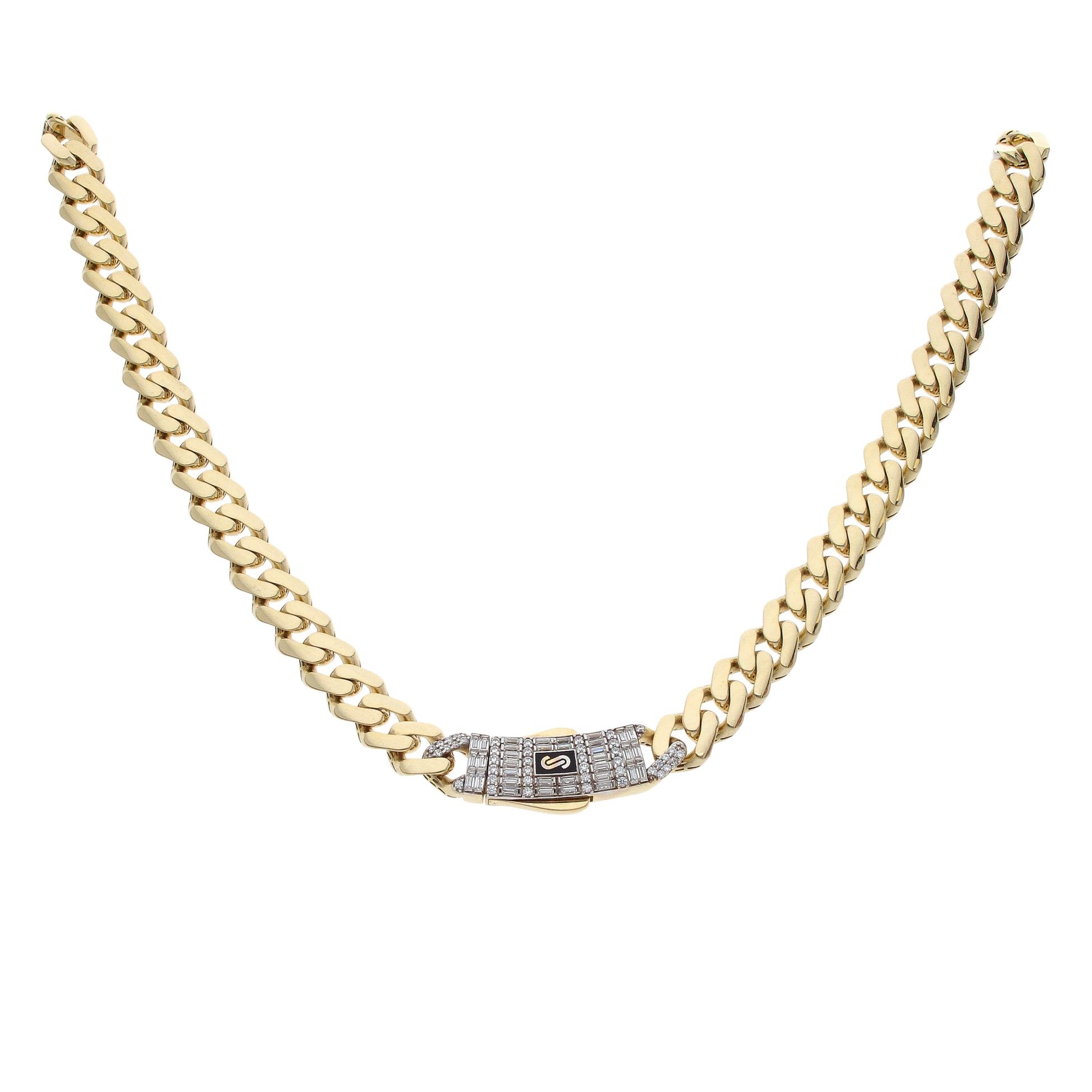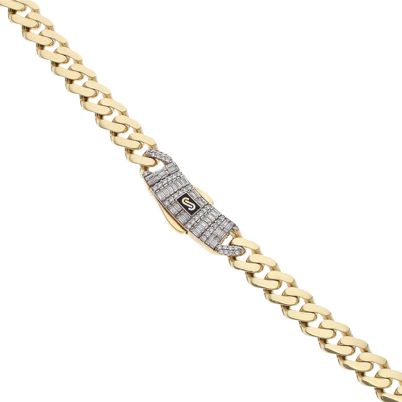 14ct Yellow Gold Monaco Classic Cubic Zirconia Baguette Pave Lock Curb Chain 20"