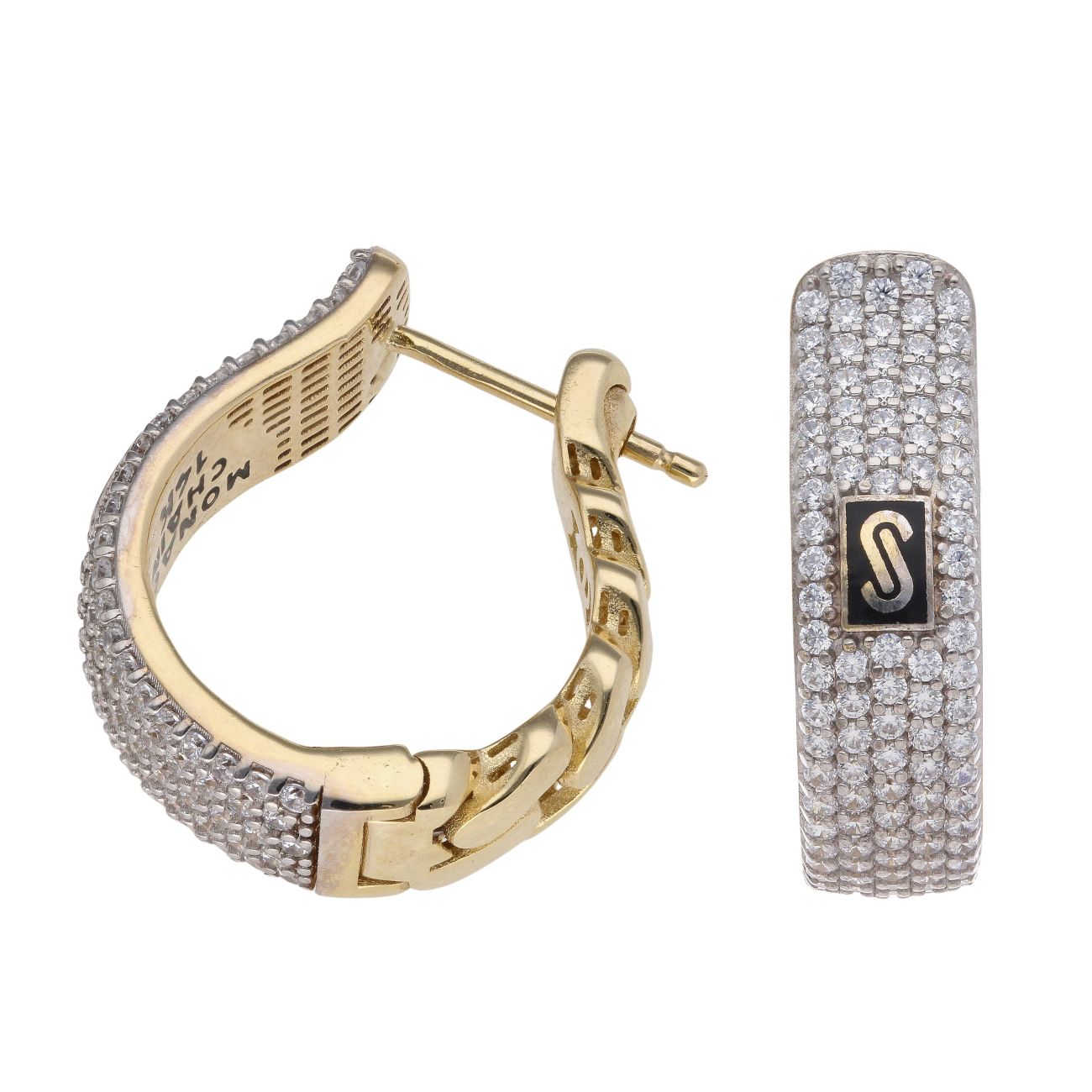 14ct Yellow Gold Monaco Classic Cubic Zirconia Pave Hoop Earrings
