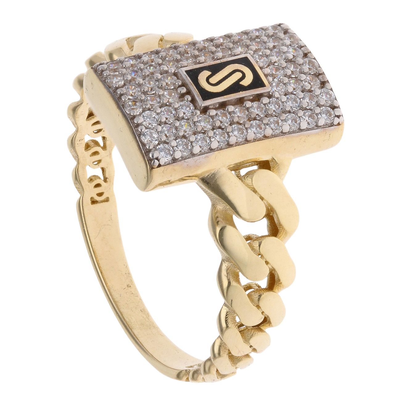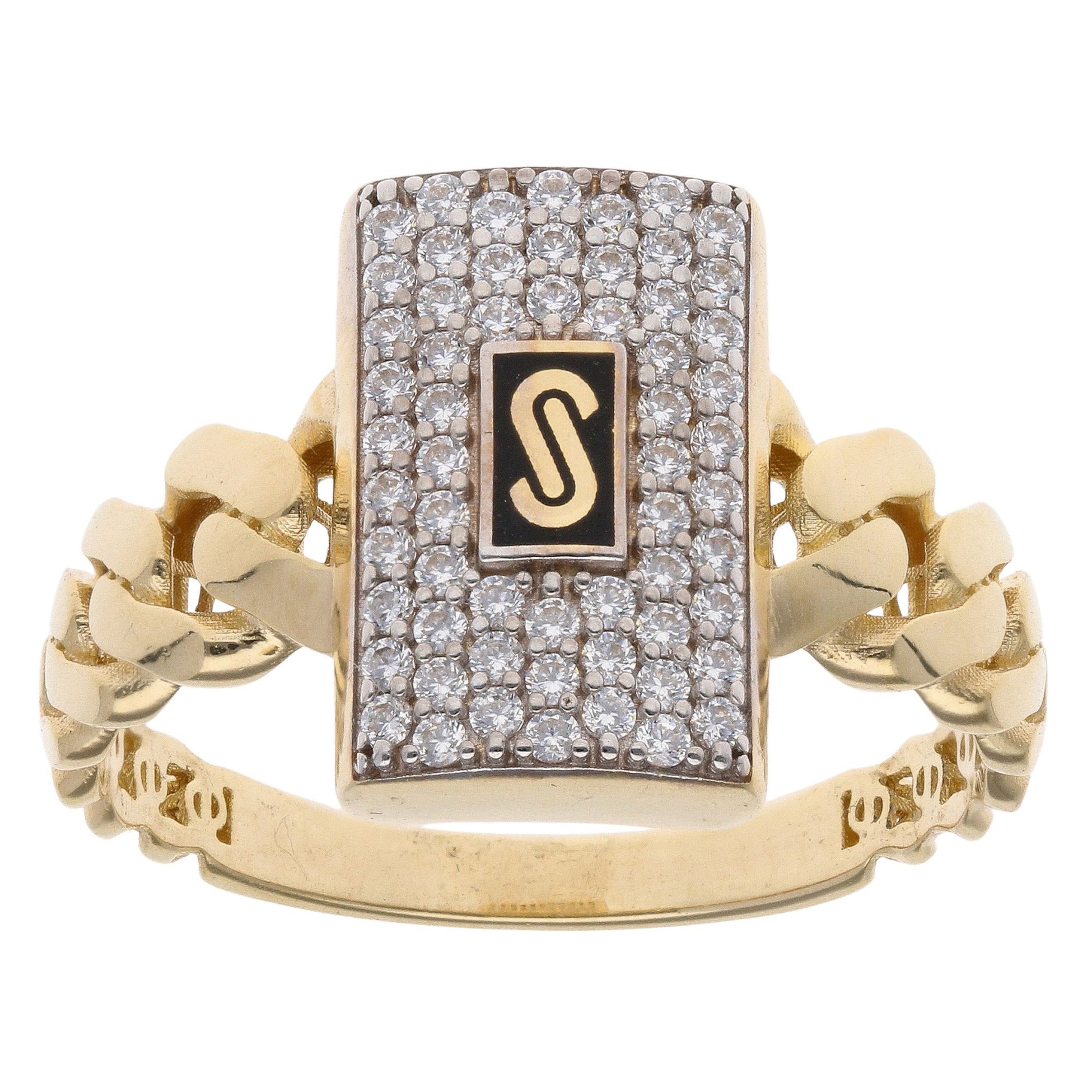 14ct Yellow Gold Monaco Classic Cubic Zirconia Pave Signet Ring