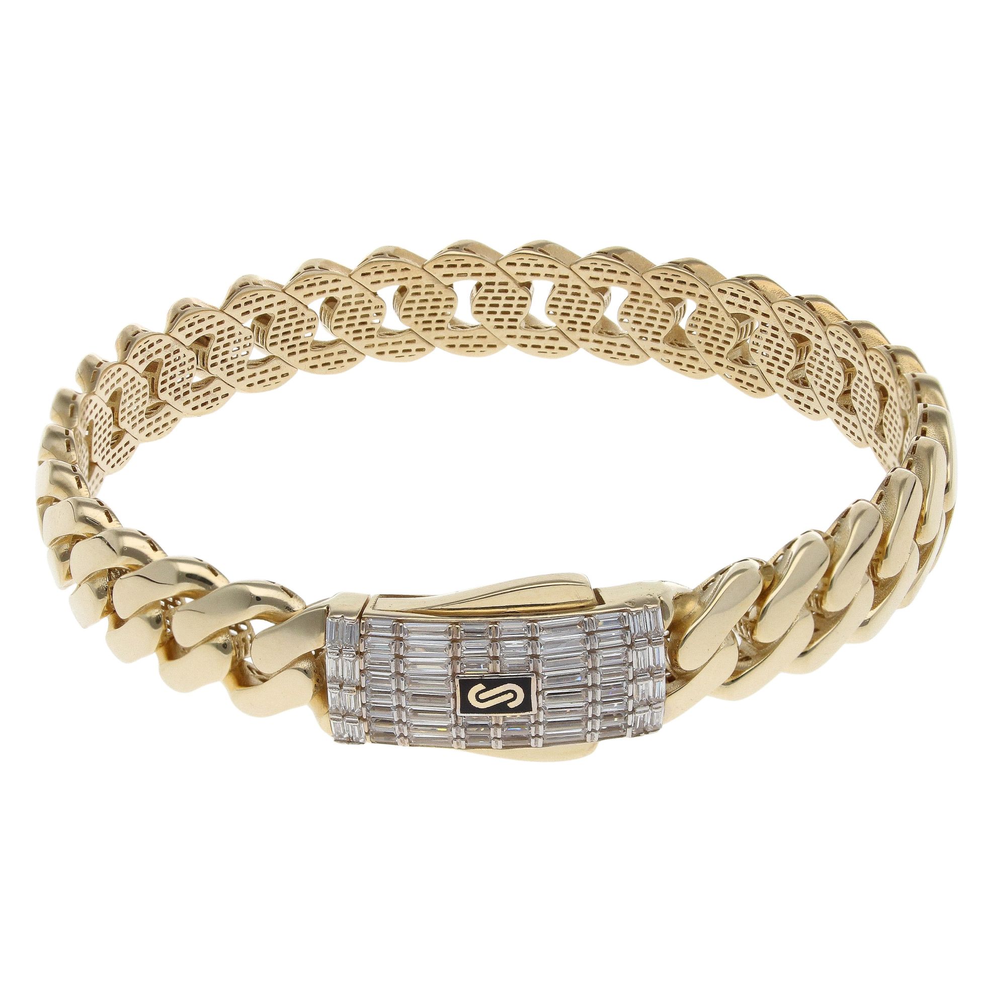 14ct Yellow Gold Monaco Classic Pave Lock Bangle