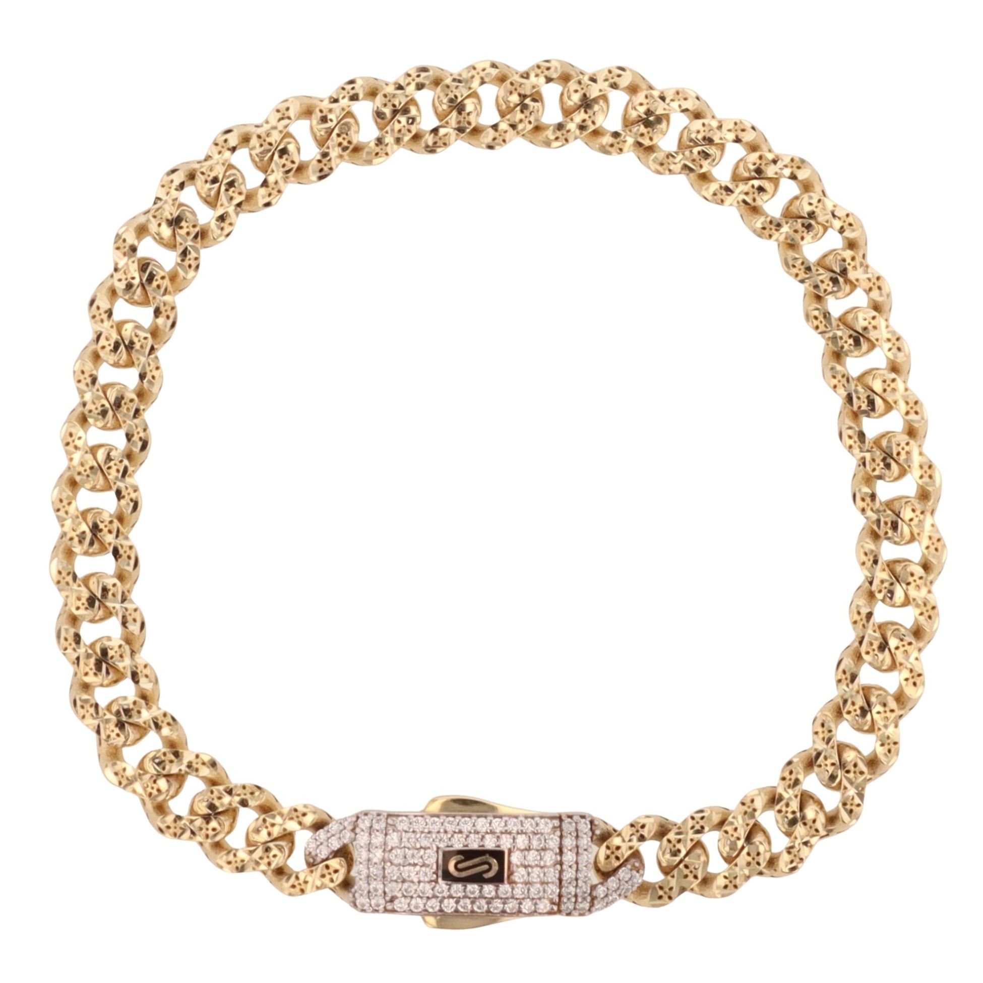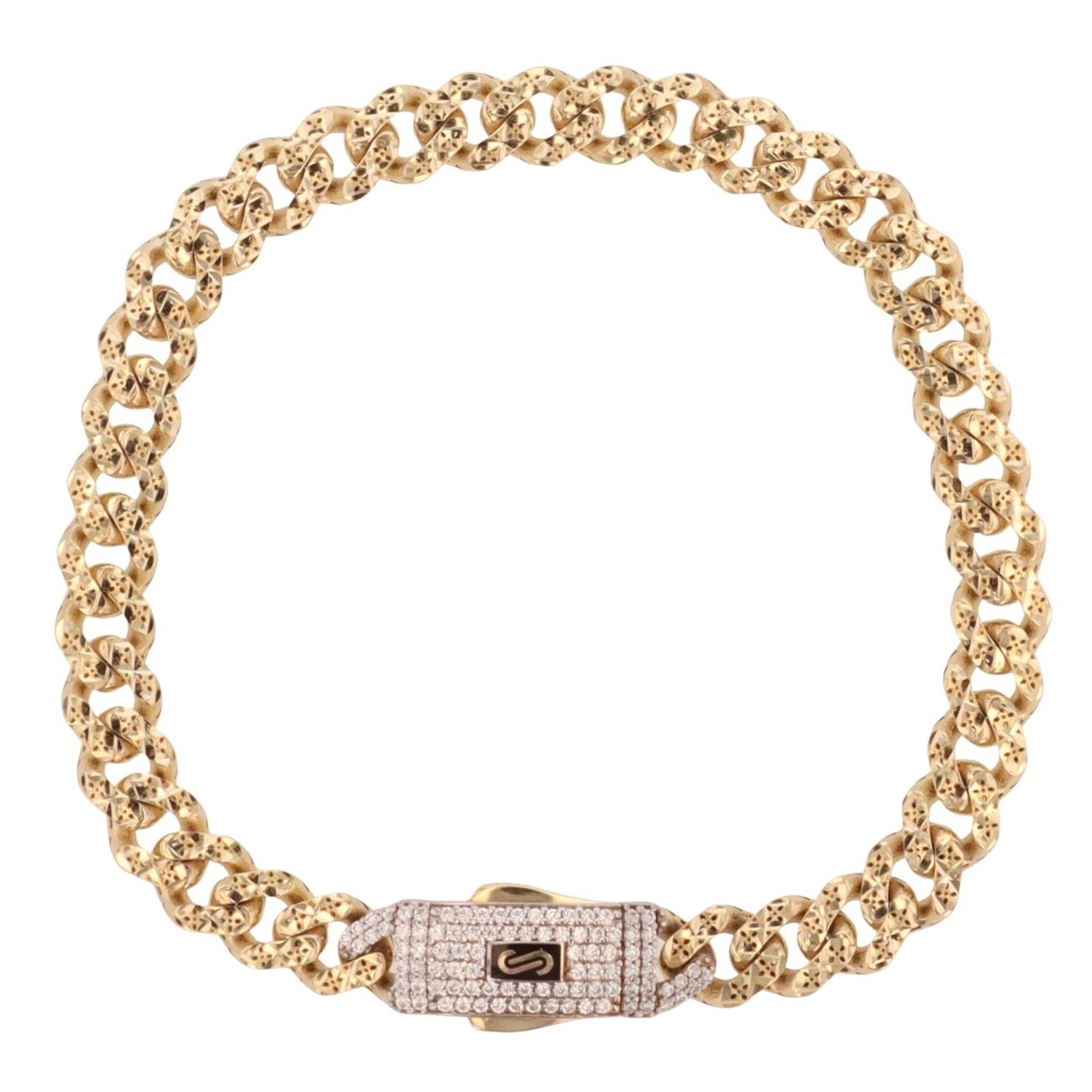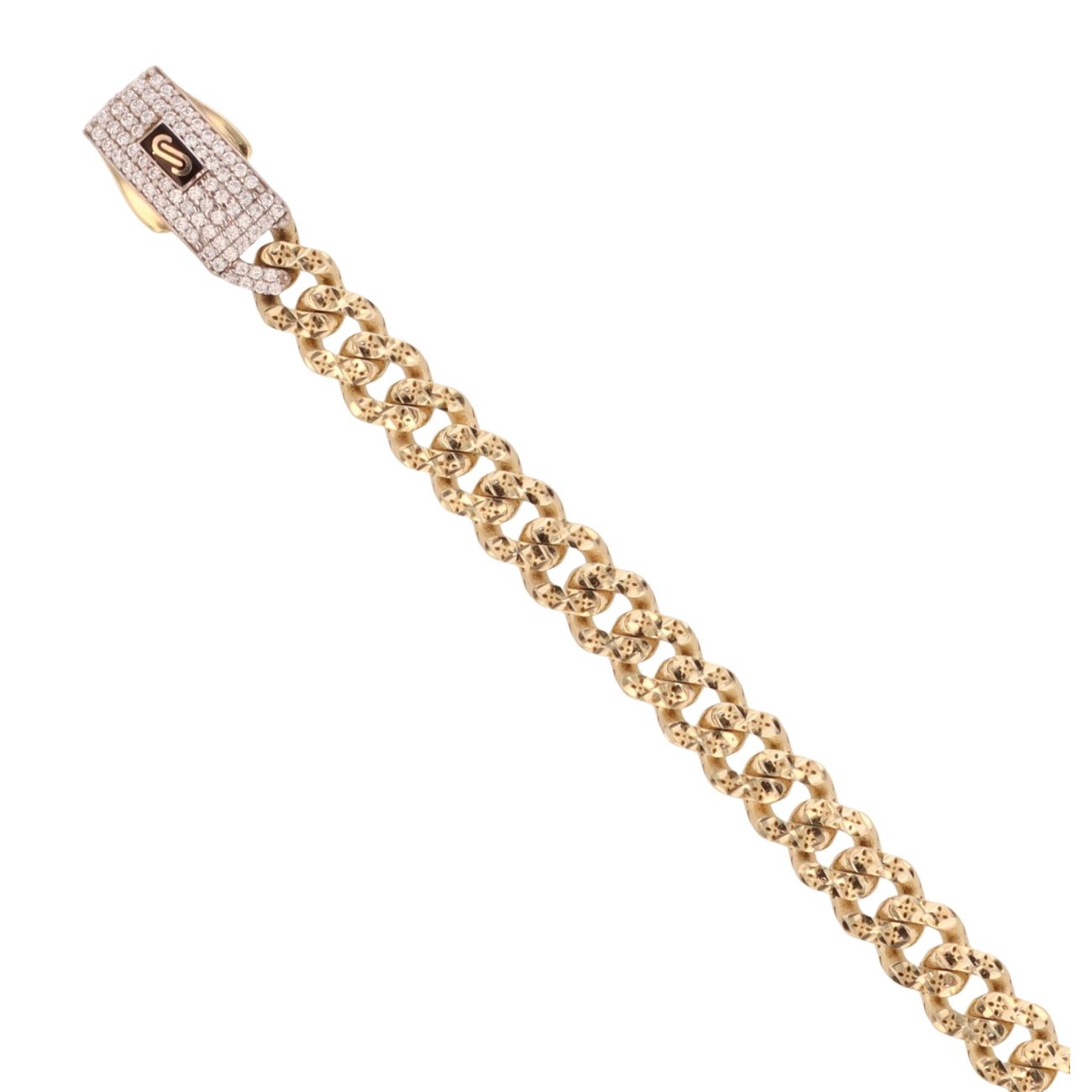14ct Yellow Gold Monaco Classic Pave Lock Curb Bracelet 7"
