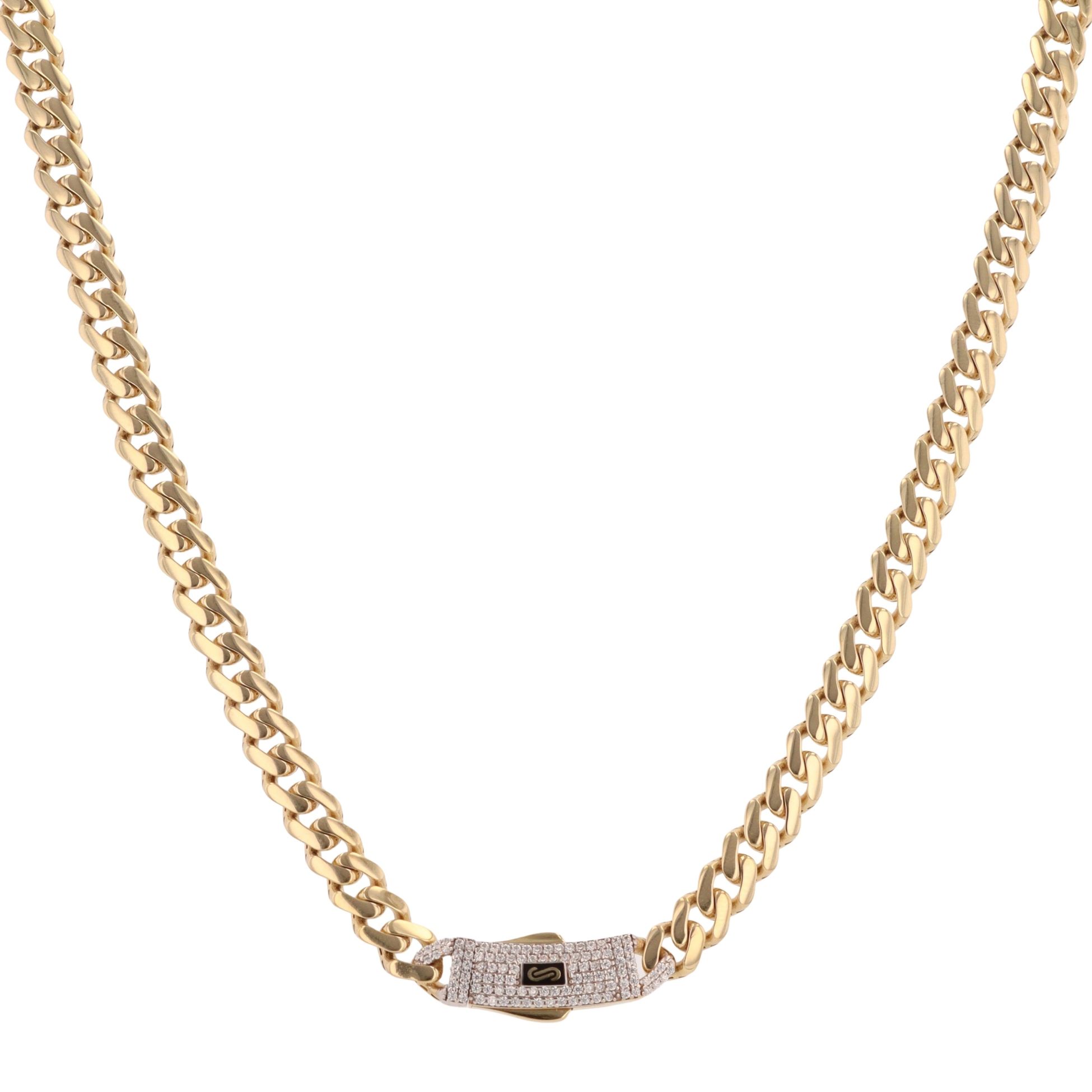 14ct Yellow Gold Monaco Classic Pave Lock Curb Chain 16"