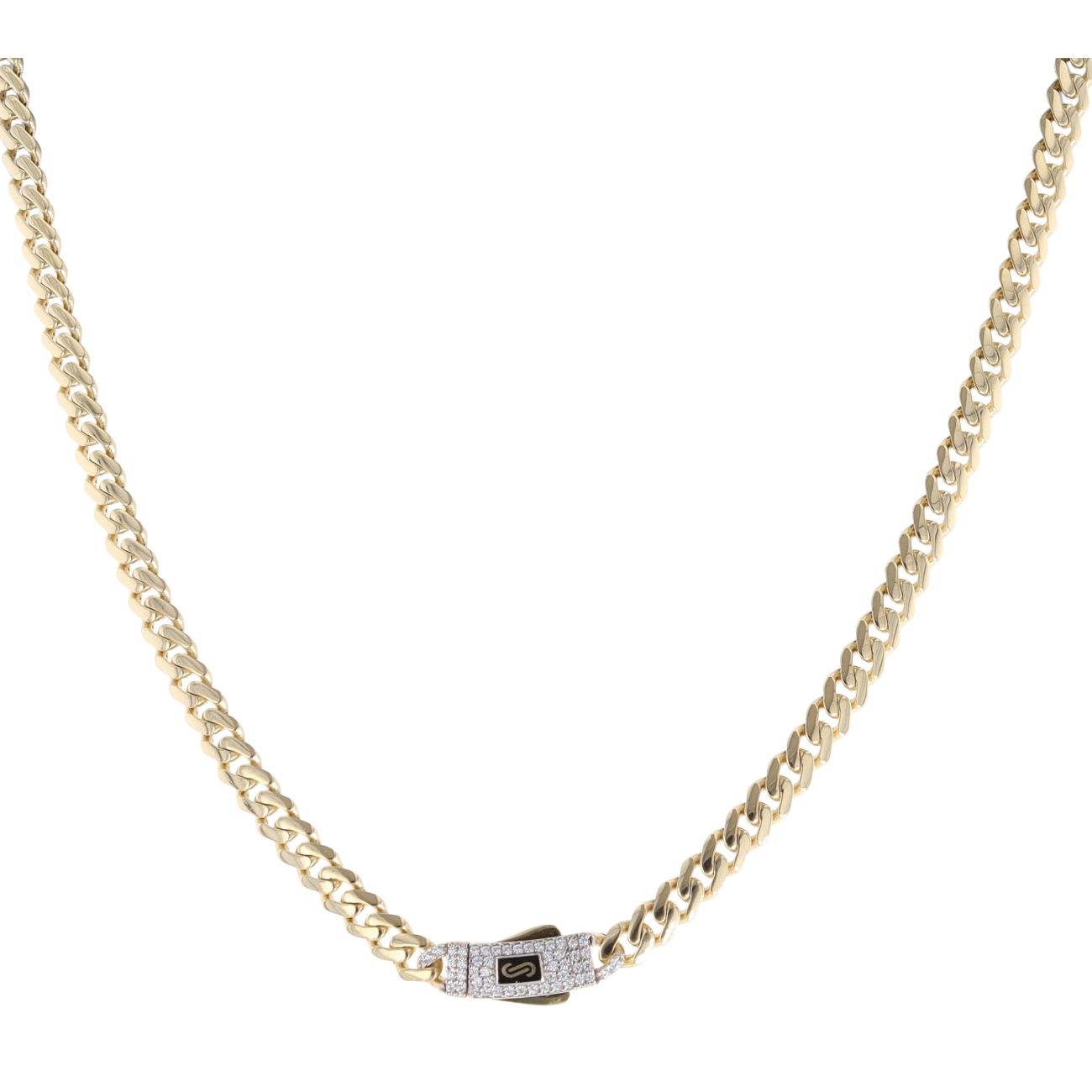 14ct Yellow Gold Monaco Classic Pave Lock Curb Chain 18"