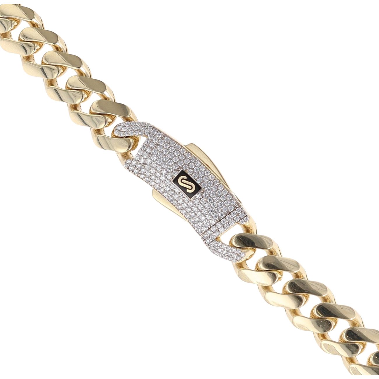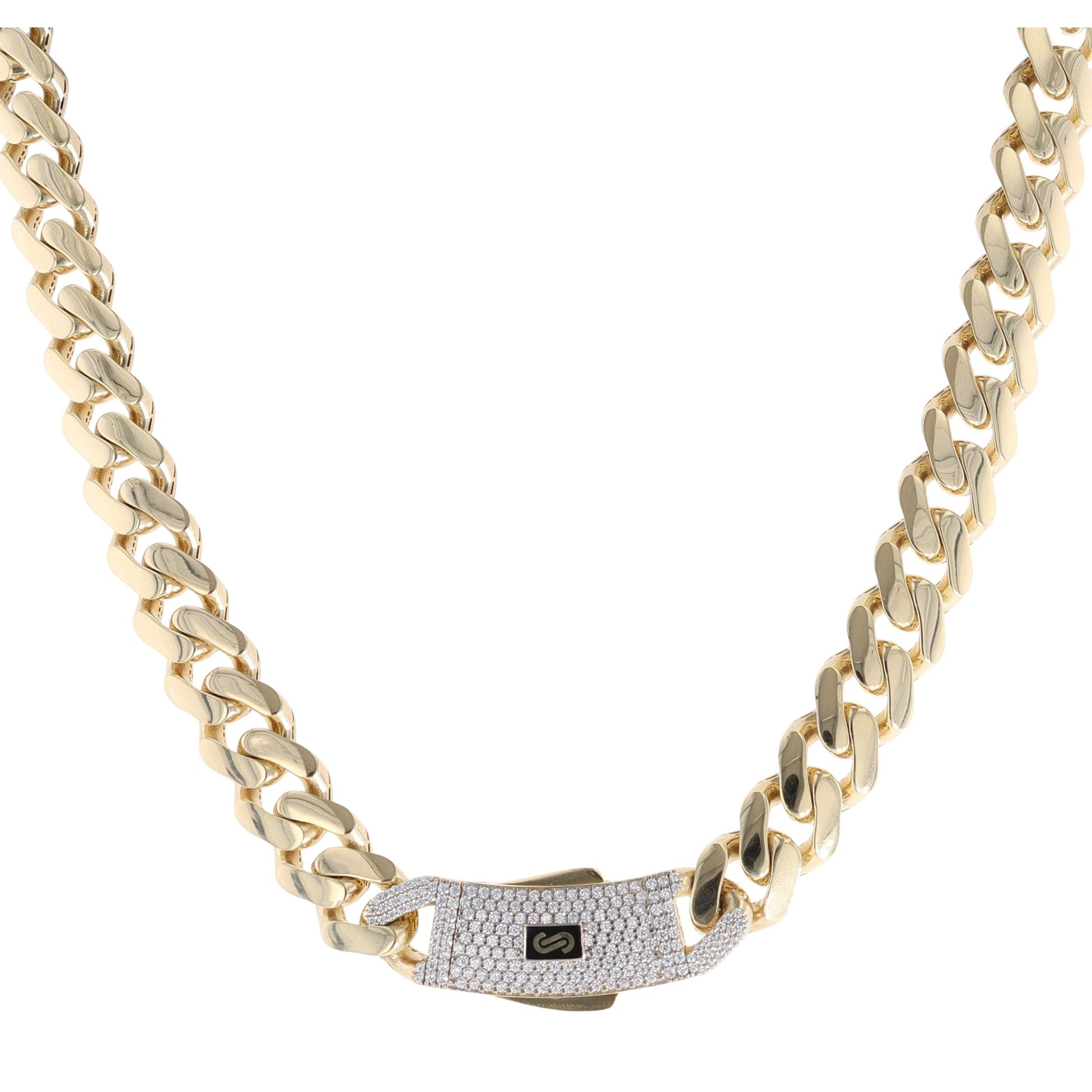 14ct Yellow Gold Monaco Classic Pave Lock Curb Chain 20"