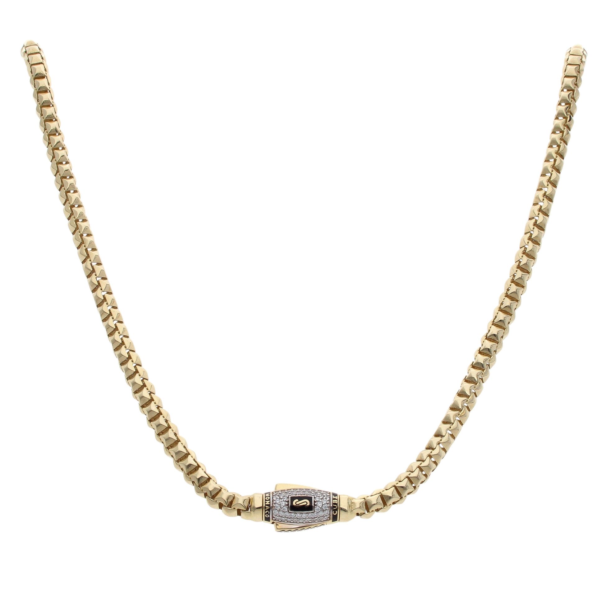 14ct Yellow Gold Monaco Cube Pave Lock Chain 24"
