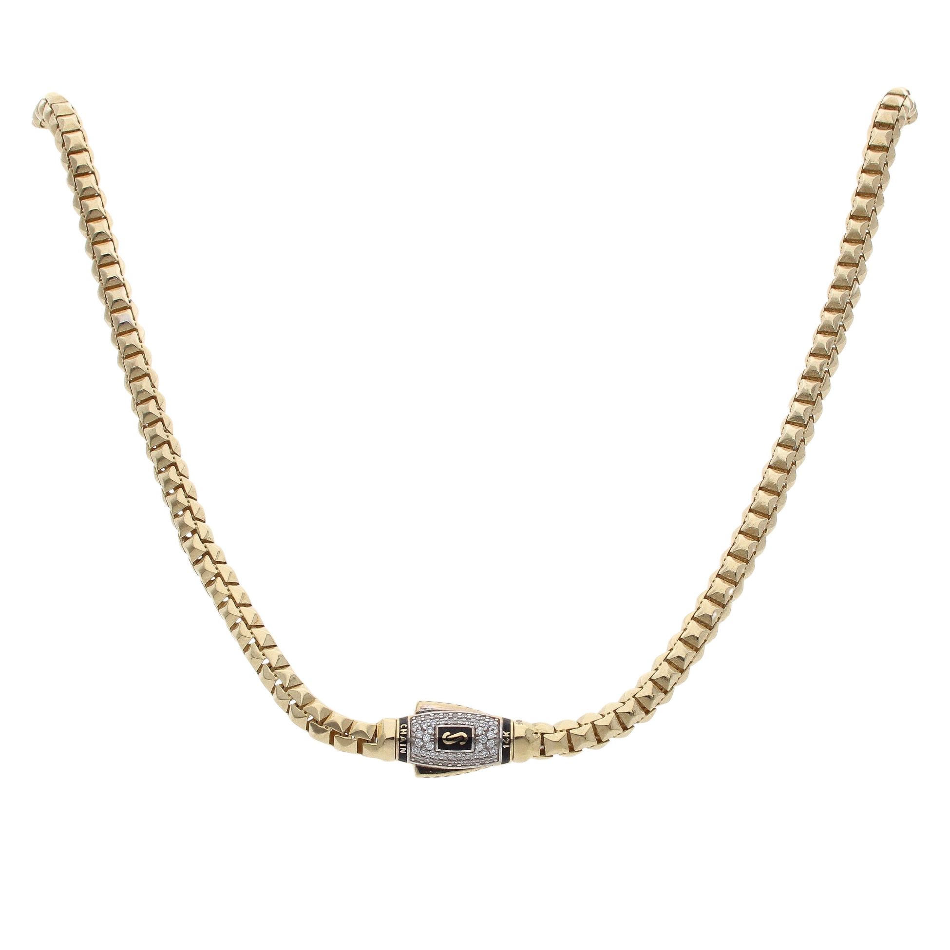 14ct Yellow Gold Monaco Cube Pave Lock Chain 26"