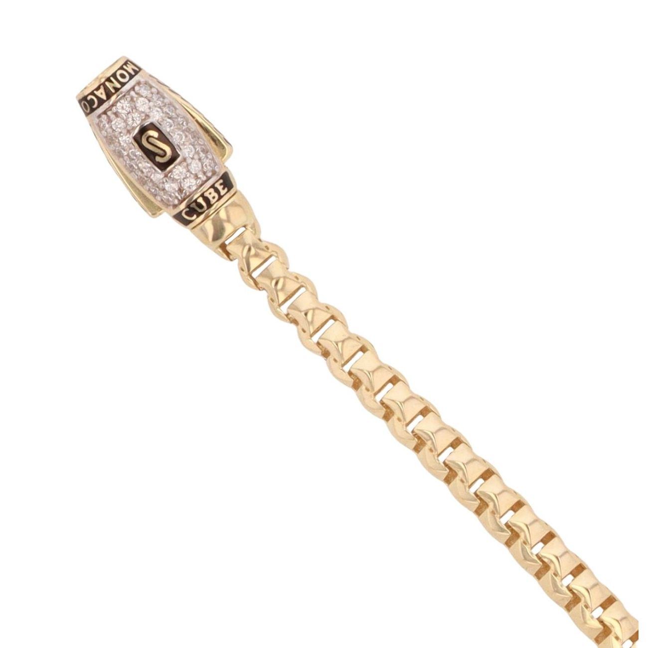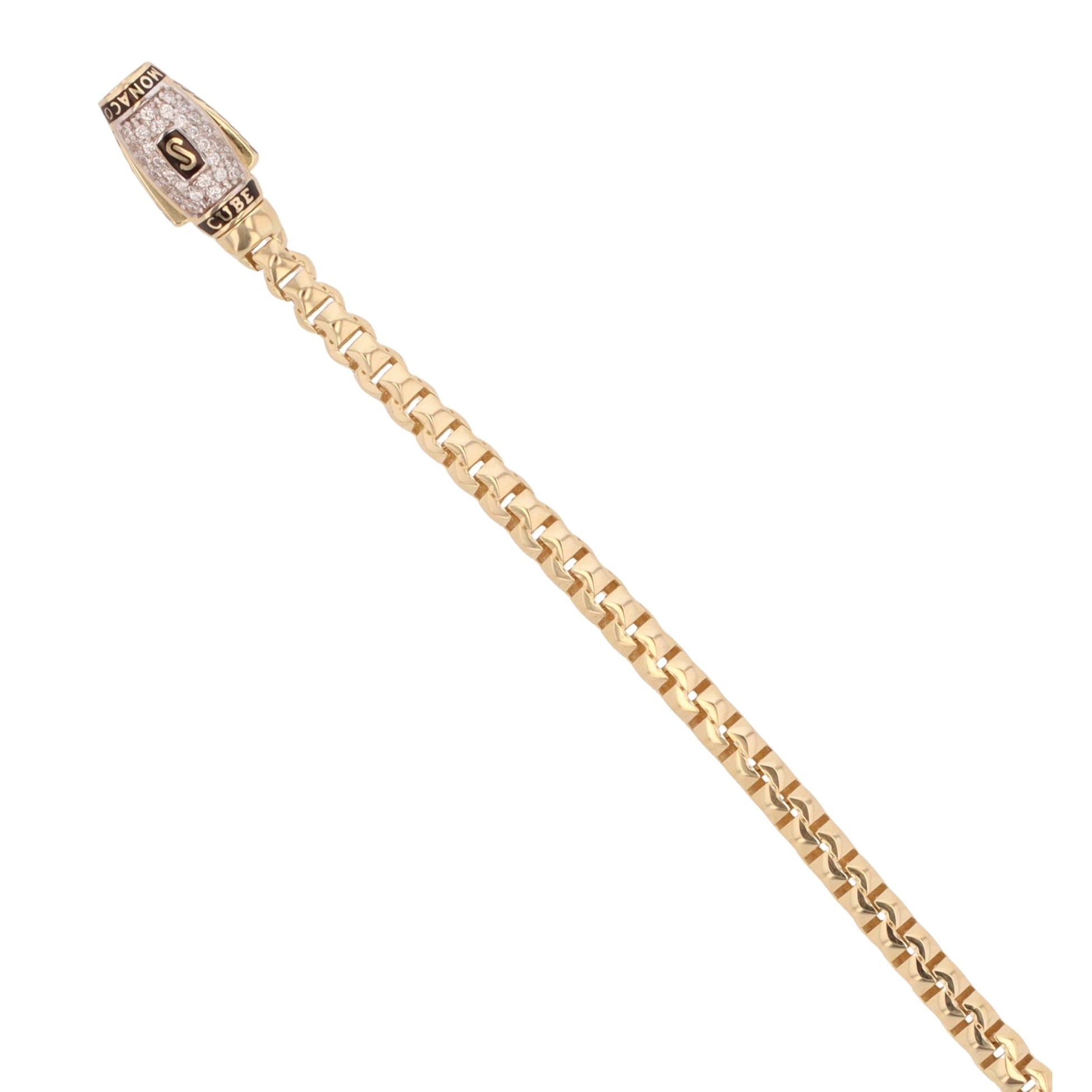 14ct Yellow Gold Monaco Cube Plain Pave Lock Bracelet 7.5"
