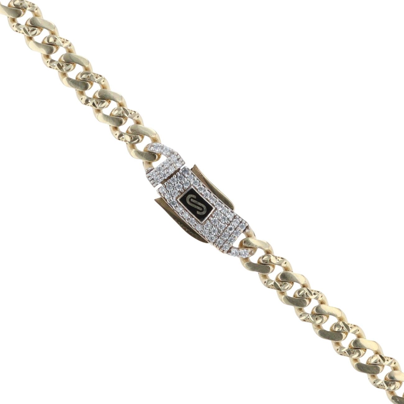 14ct Yellow Gold Monaco Curb Alternate Pave Lock Chain 20"