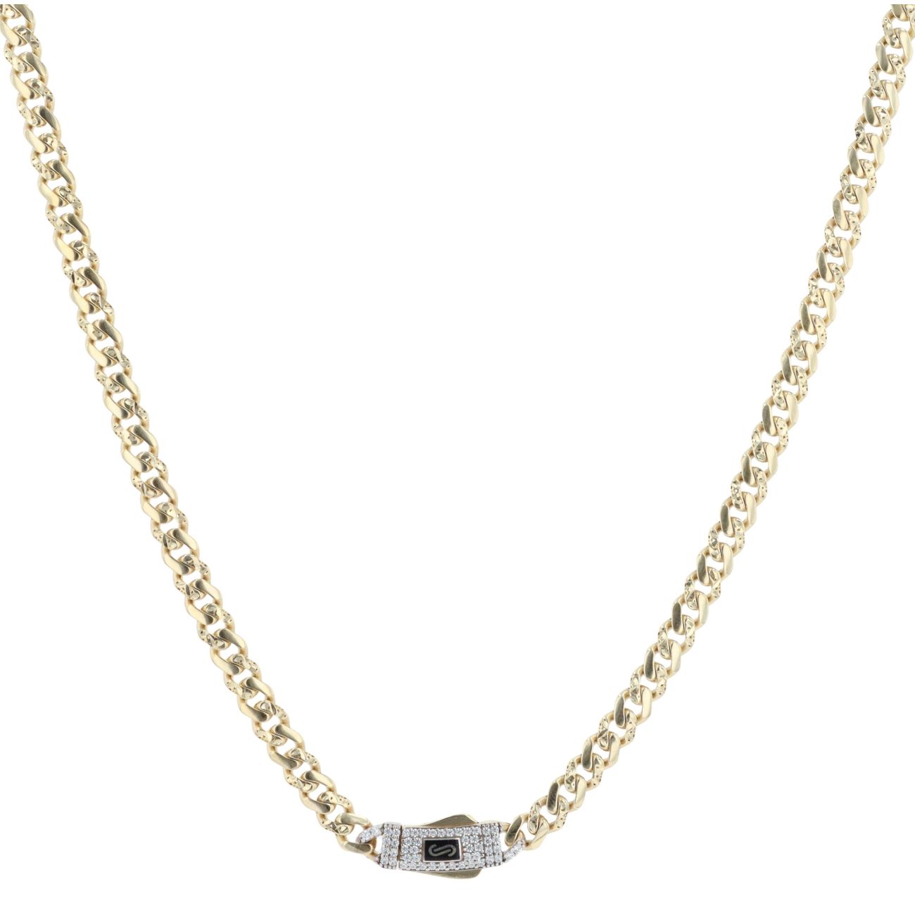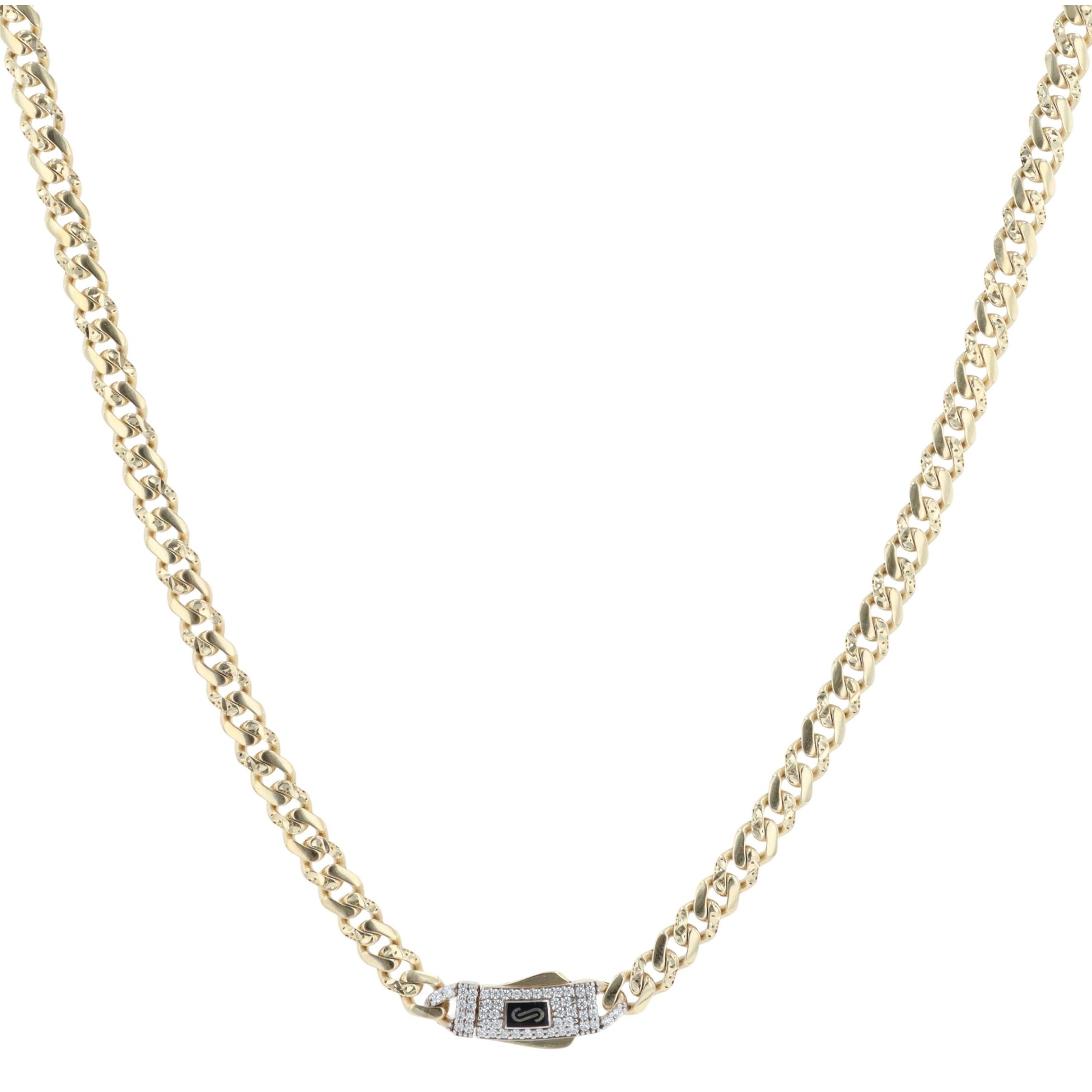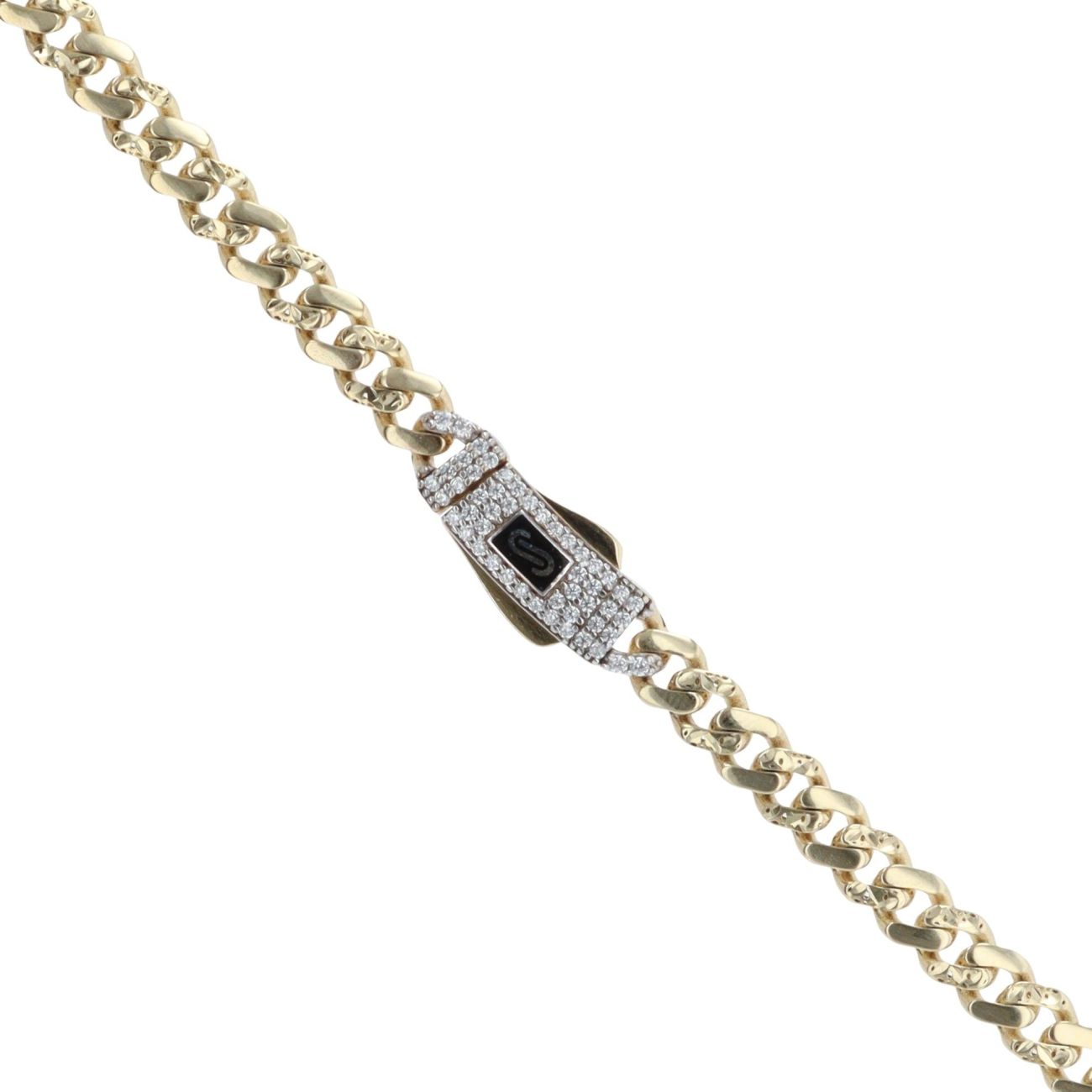 14ct Yellow Gold Monaco Curb Classic Alternate Flex Pave Lock Chain 18"