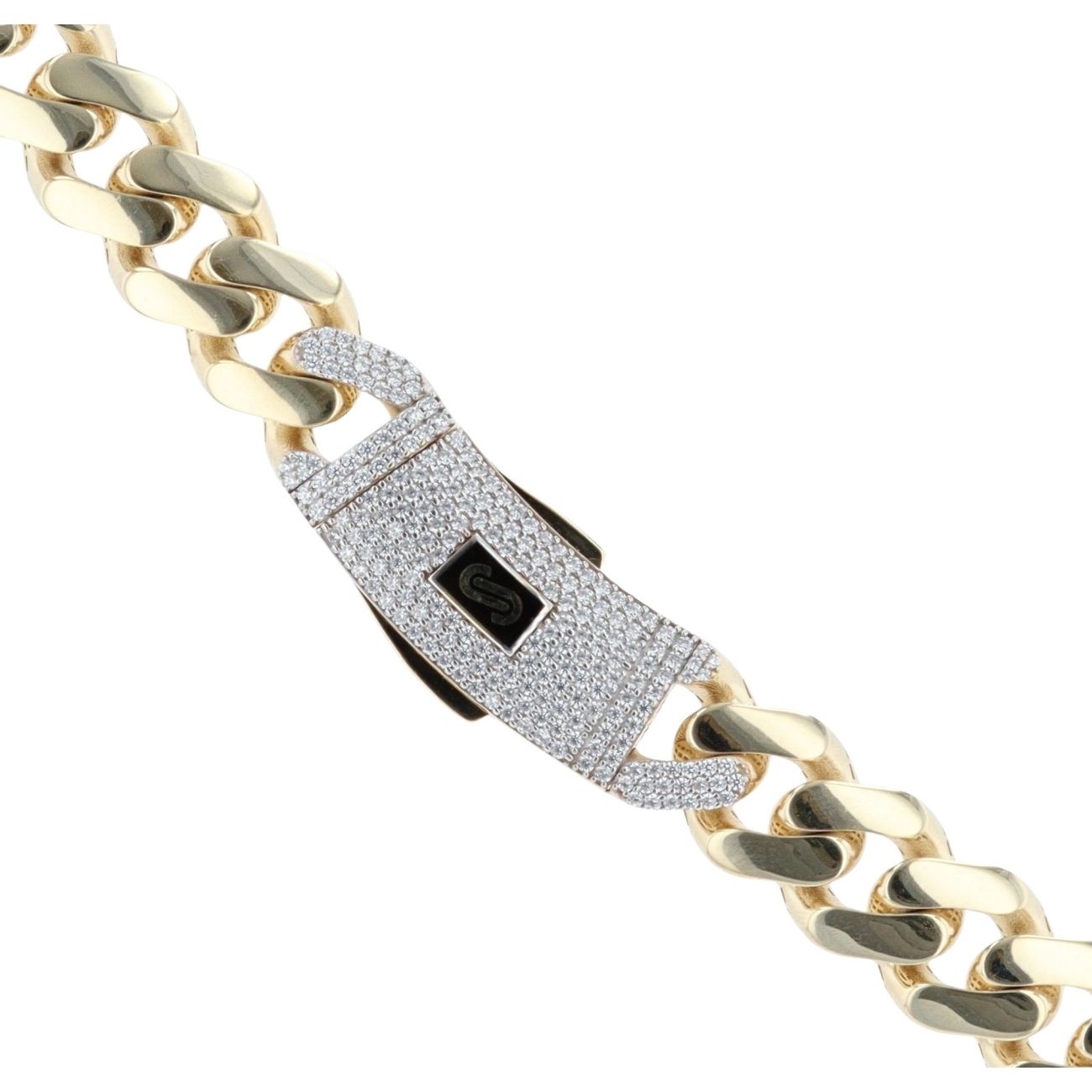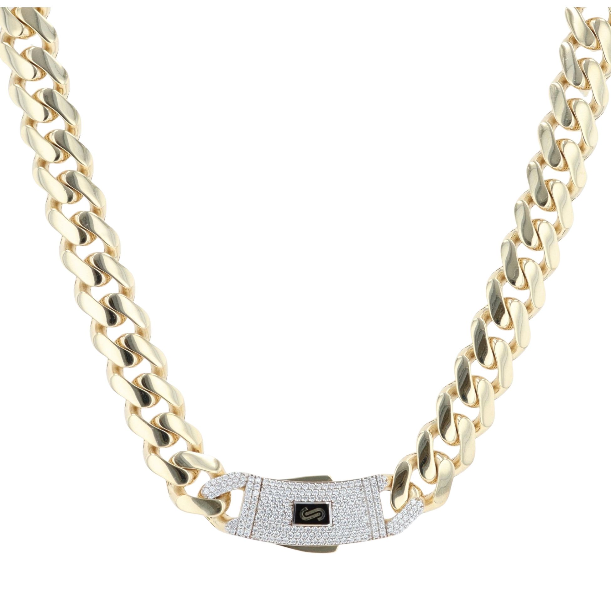 14ct Yellow Gold Monaco Curb Classic Cubic Zirconia Pave Lock Chain 22"