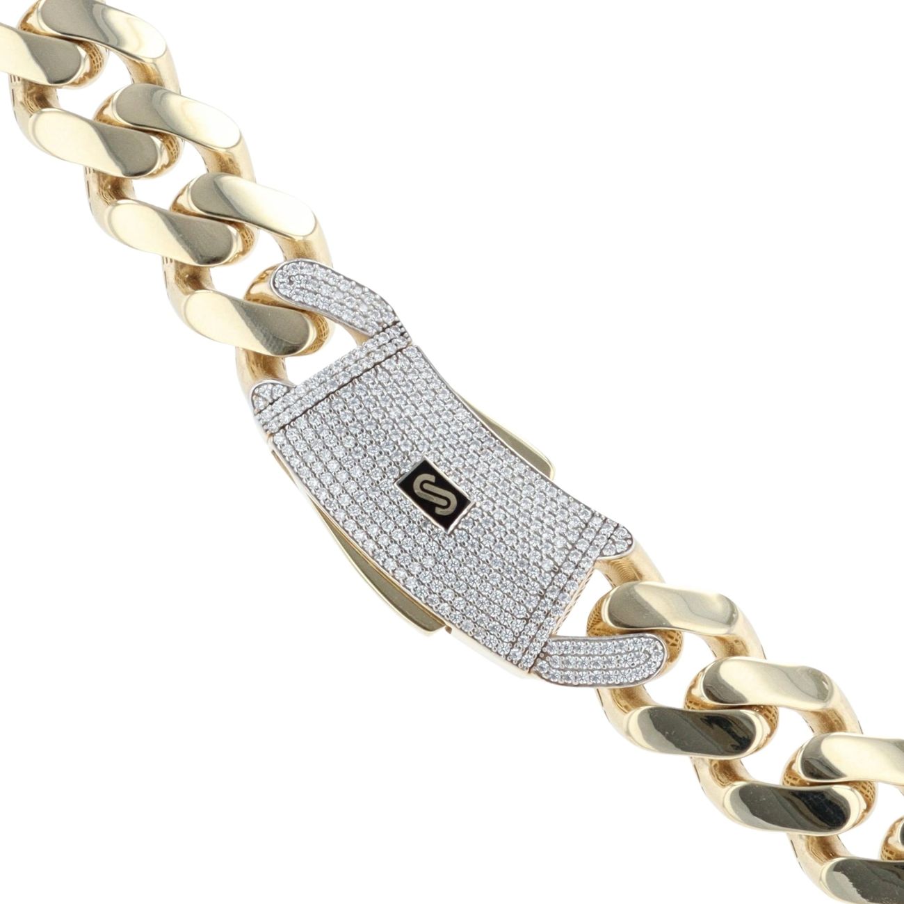 14ct Yellow Gold Monaco Curb Classic Cubic Zirconia Pave Lock Chain 24"