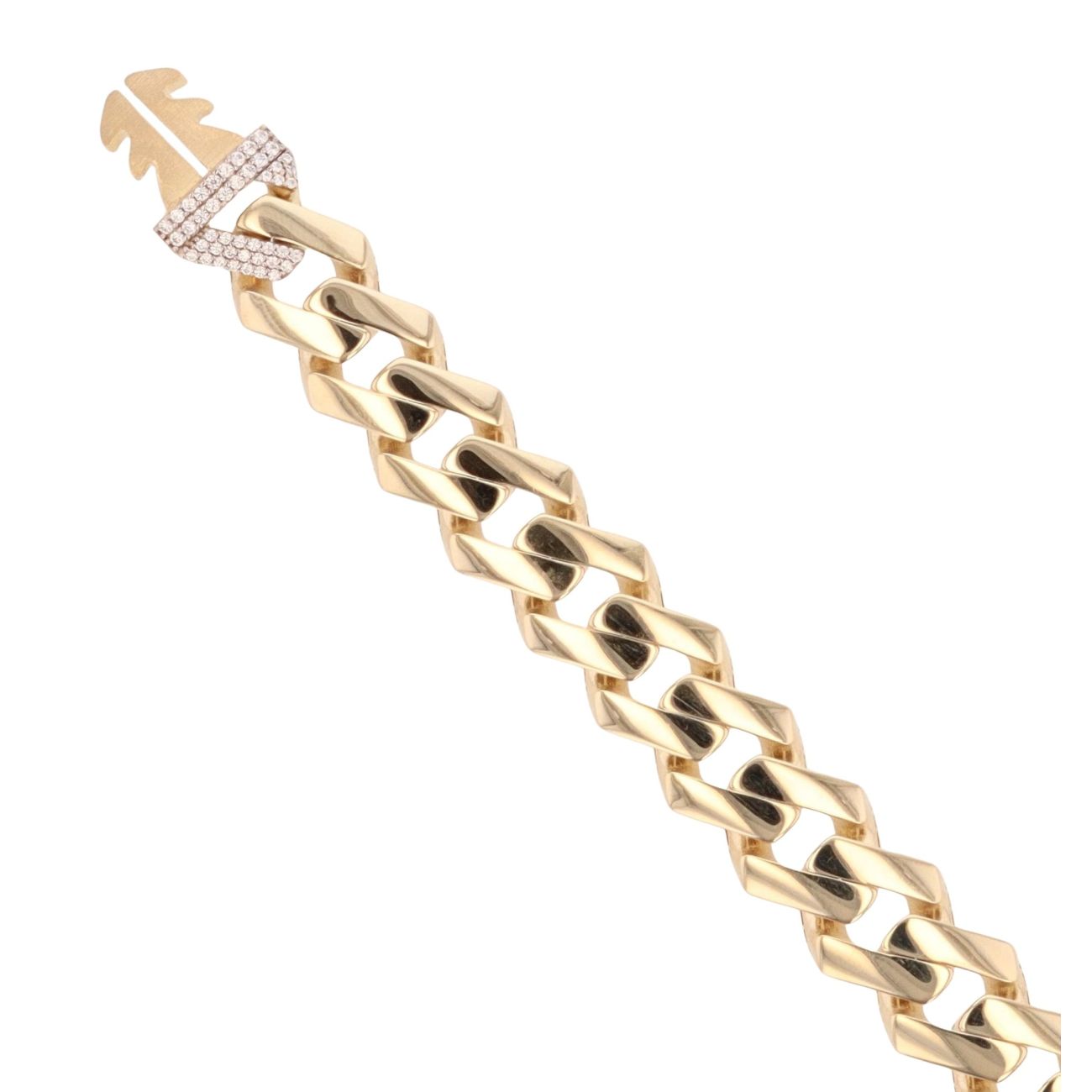 14ct Yellow Gold Monaco Curb Edge Cubic Zirconia Pave Lock Bracelet 9"