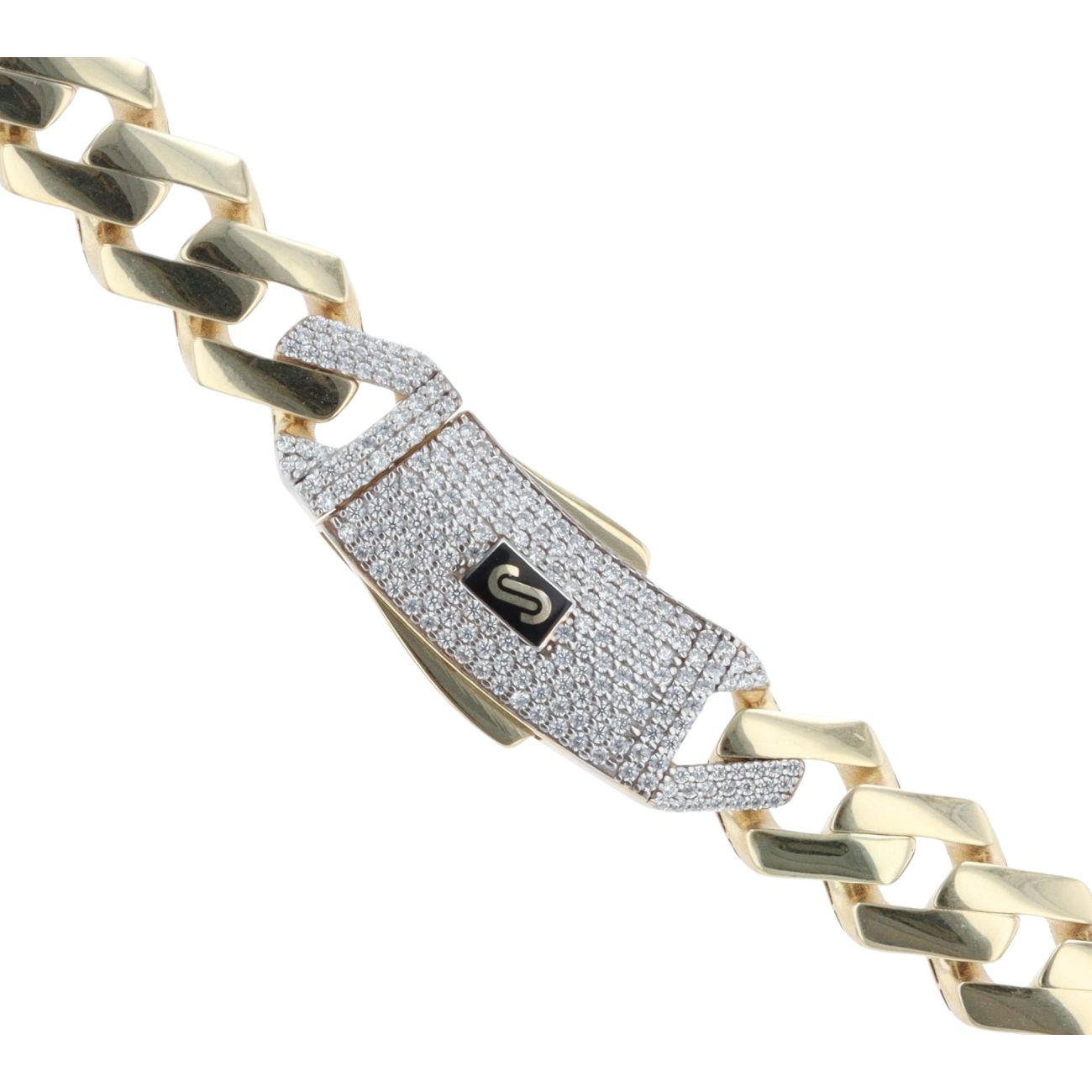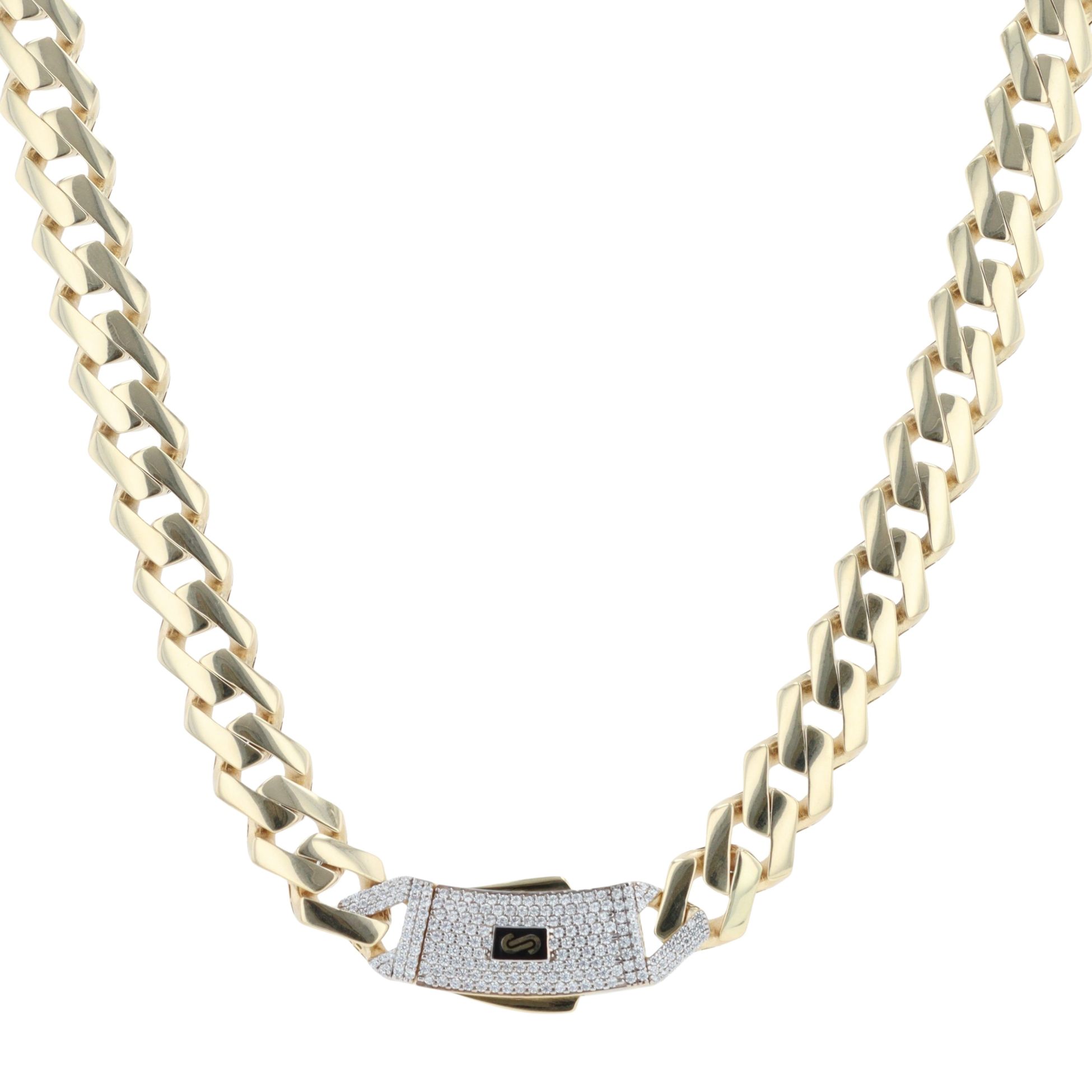 14ct Yellow Gold Monaco Curb Edge Cubic Zirconia Pave Lock Chain 24"