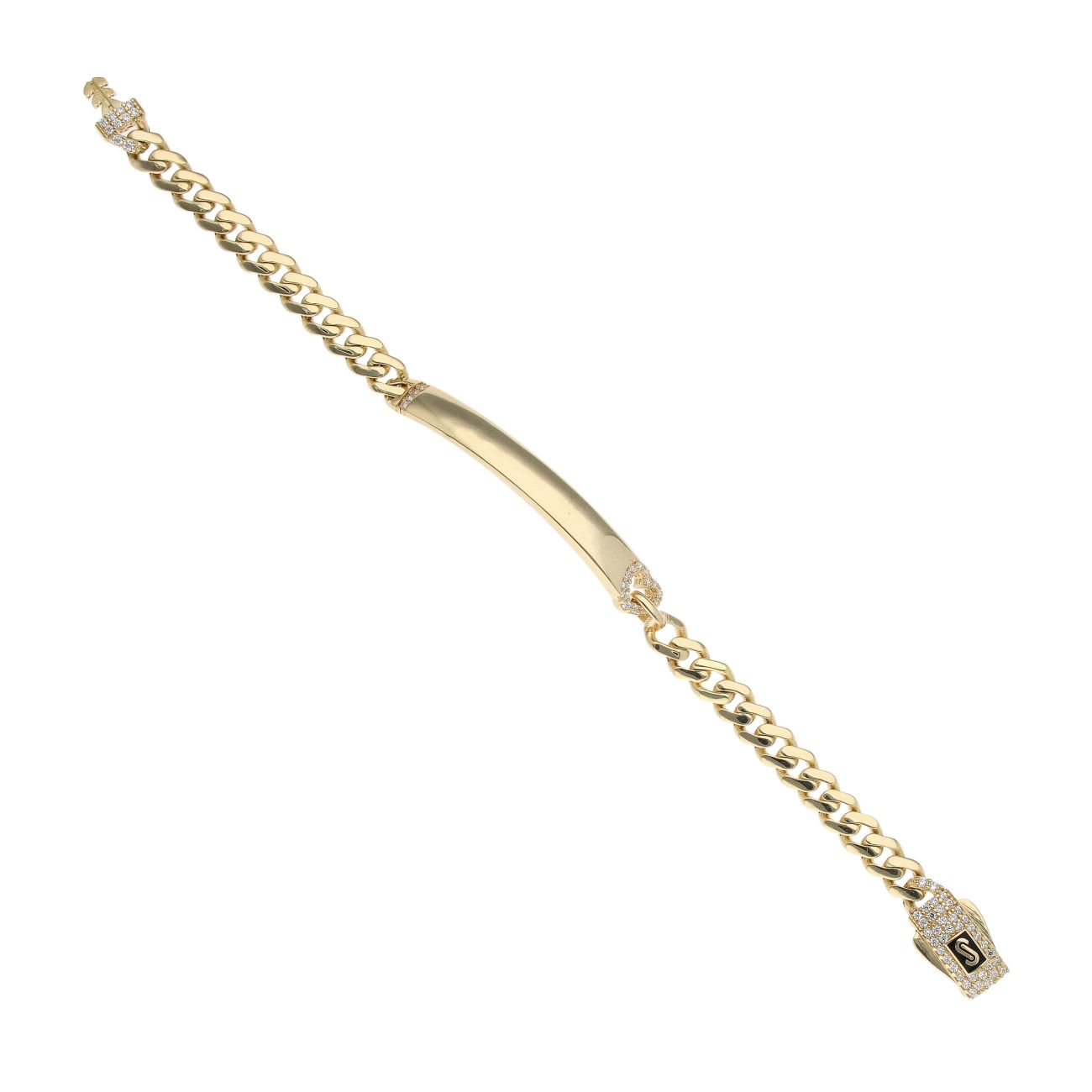 14ct Yellow Gold Monaco ID Curb Cubic Zirconia Heart Pave Lock Bracelet 5.5"