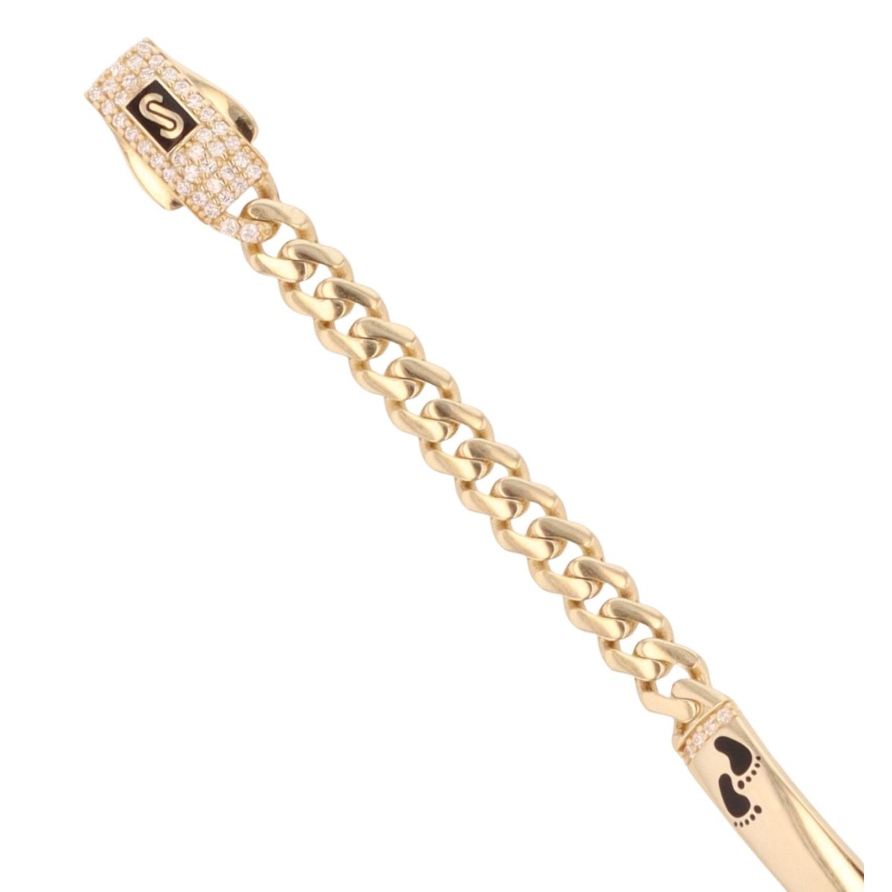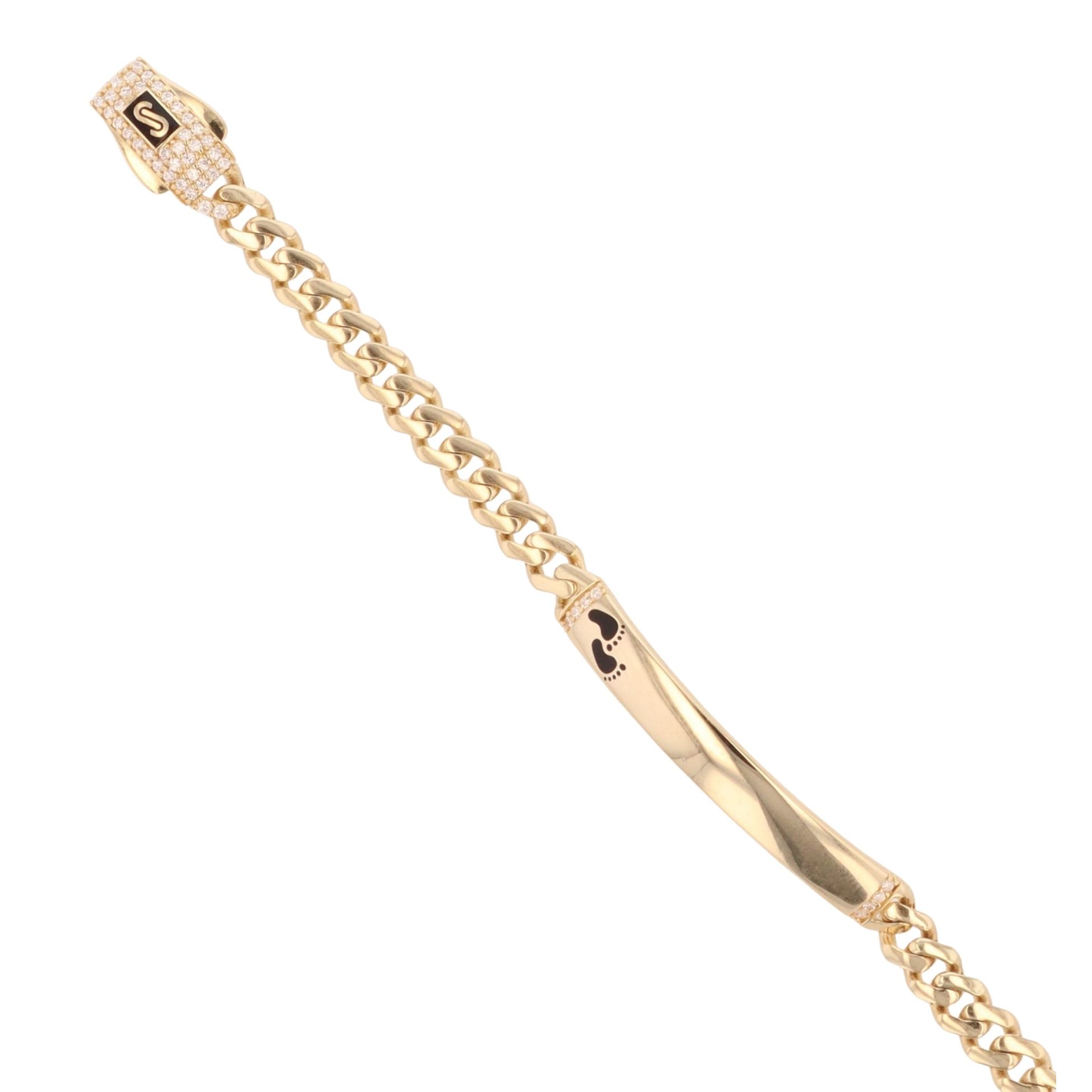 14ct Yellow Gold Monaco ID Curb Footprints Pave Lock Bracelet 5.5"