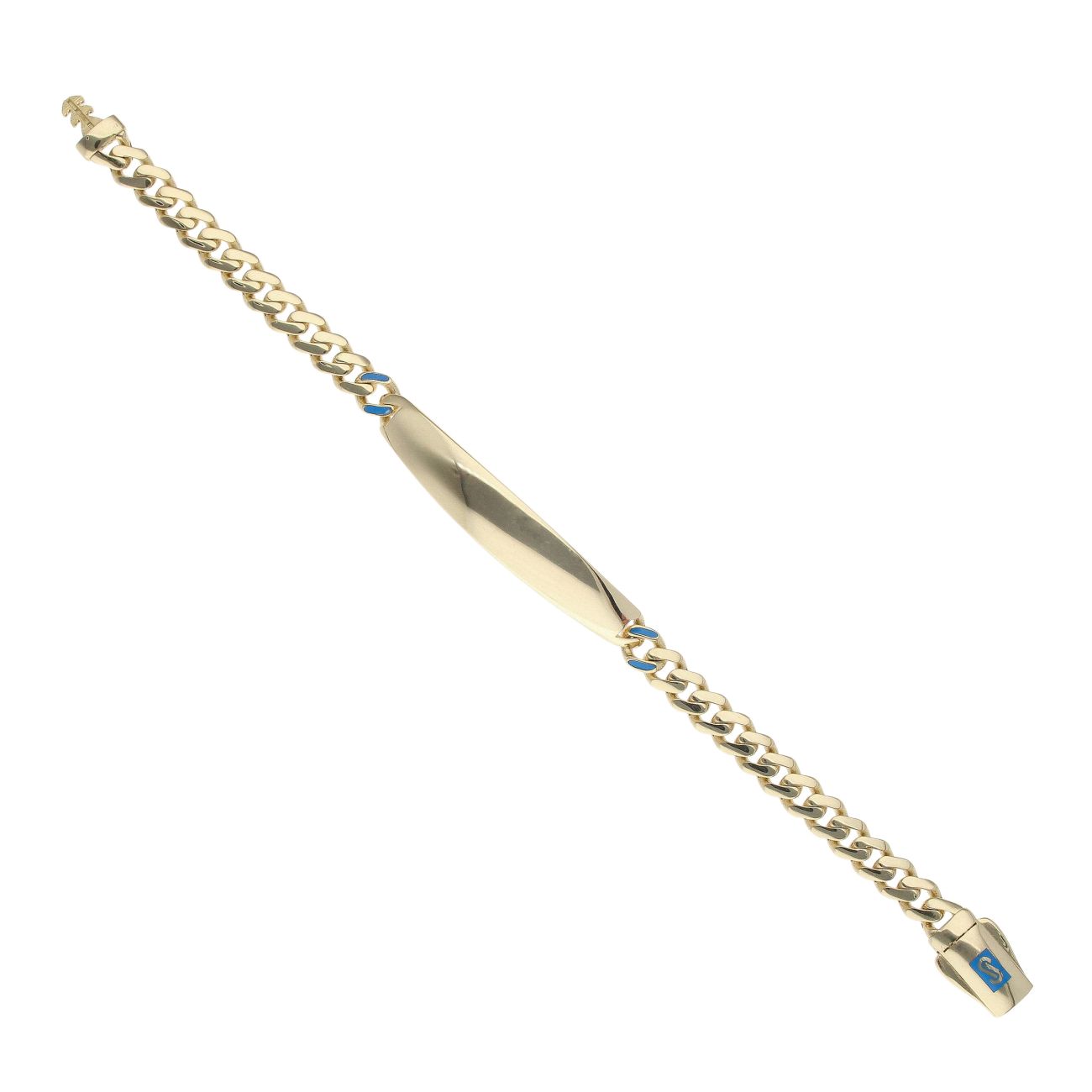 14ct Yellow Gold Monaco ID Curb Plain Lock Blue Enamel Bracelet 5.5"