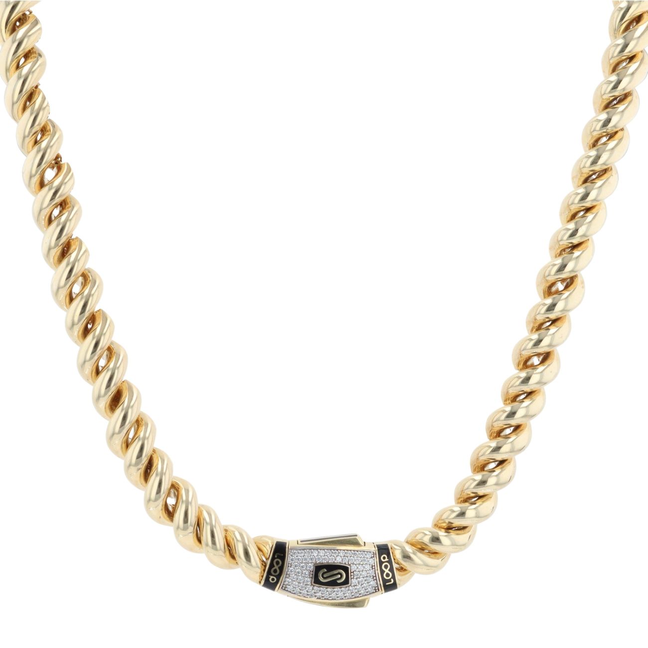 14ct Yellow Gold Monaco Loop Plain Pave Lock Chain 18"