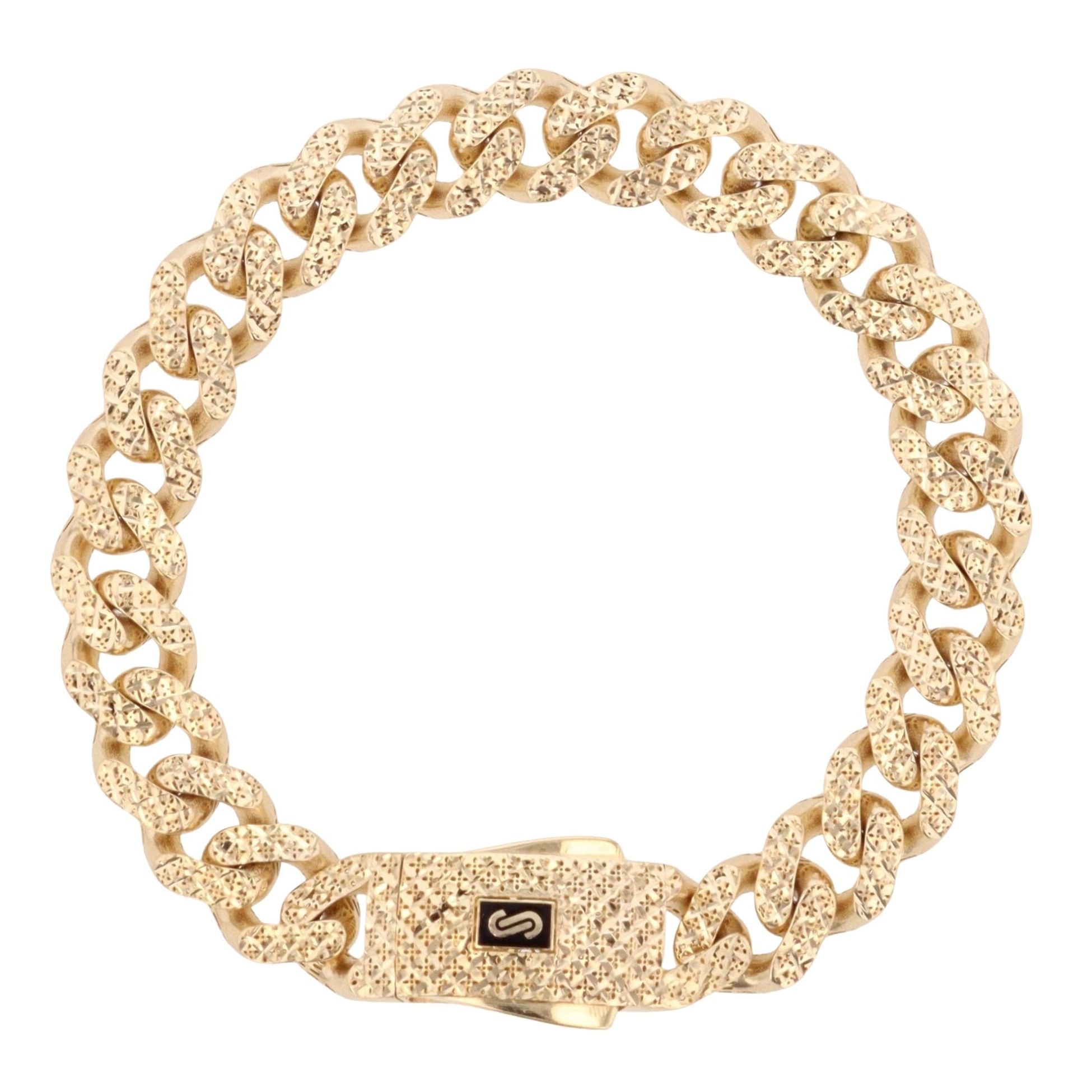14ct Yellow Gold Monaco Patterned Curb Classic Flex Lock Bracelet 8.5"