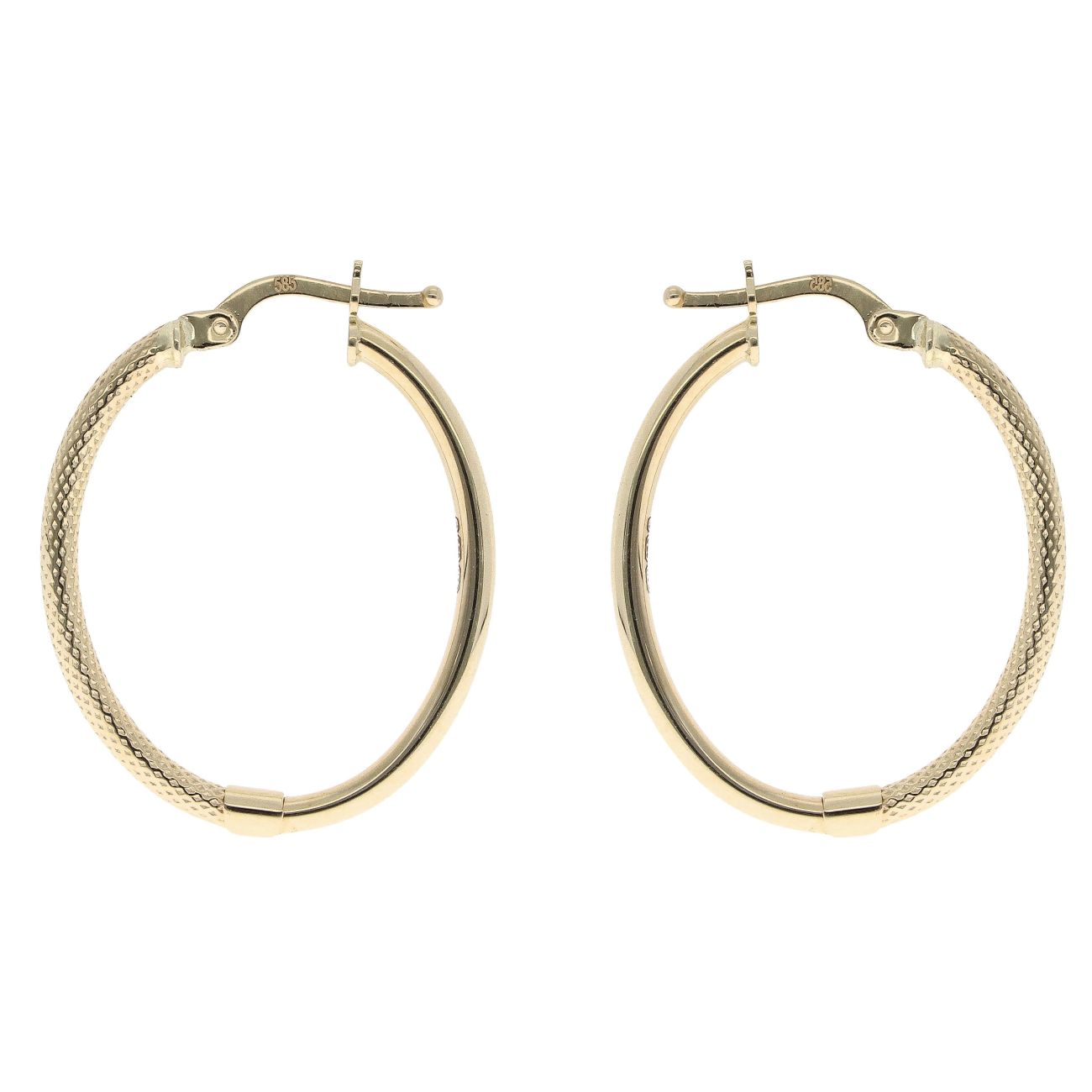 14ct Yellow Gold Patterned Oval Hoop Earrings