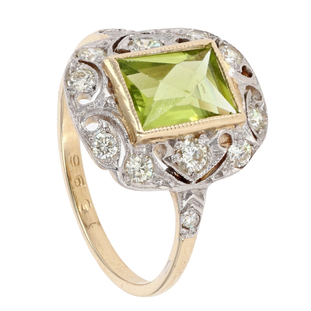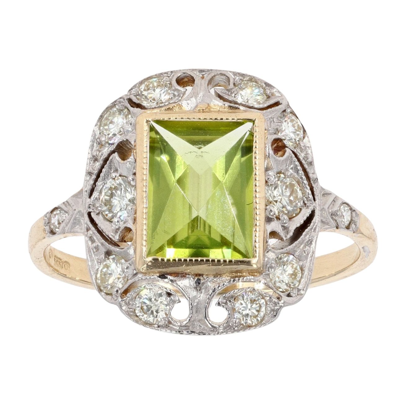 14ct Yellow Gold Peridot And 0.40ct Diamond Ring