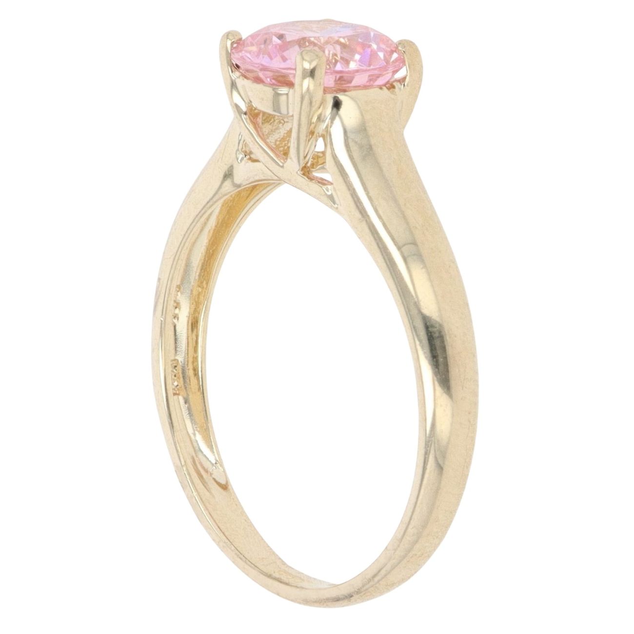 14ct Yellow Gold Pink Cubic Zirconia Single Stone Ring