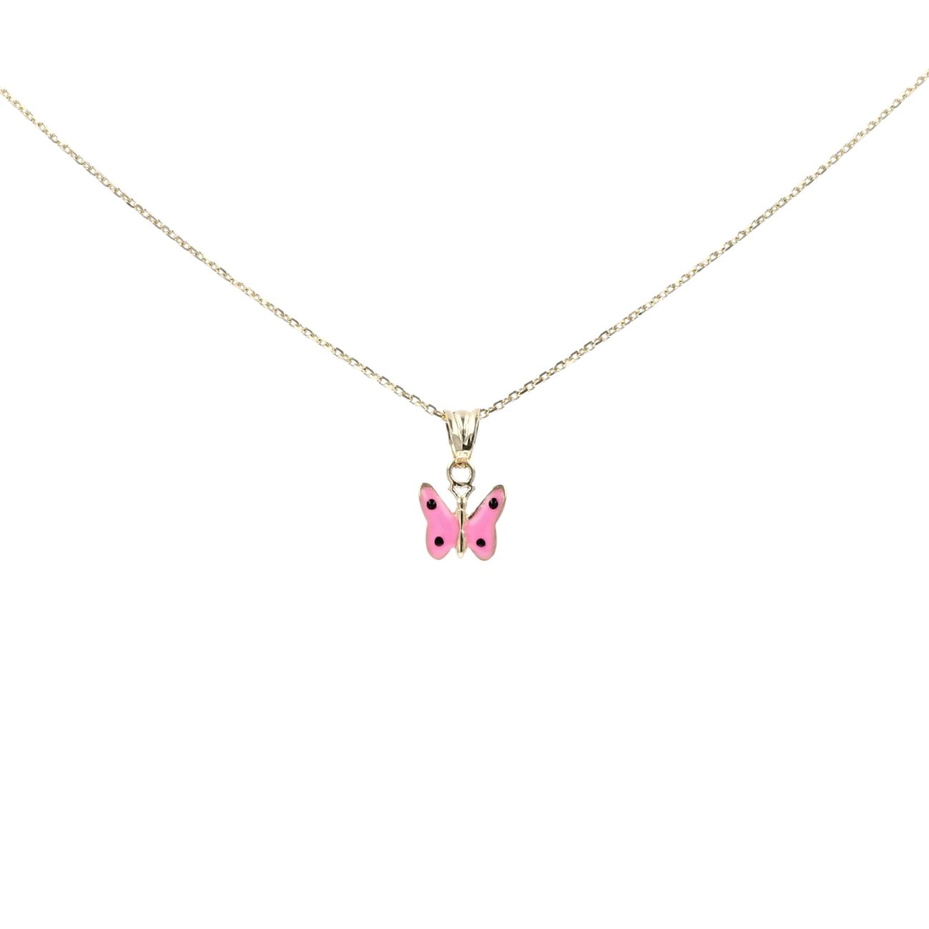 14ct Yellow Gold Pink Enamel Butterfly Pendant
