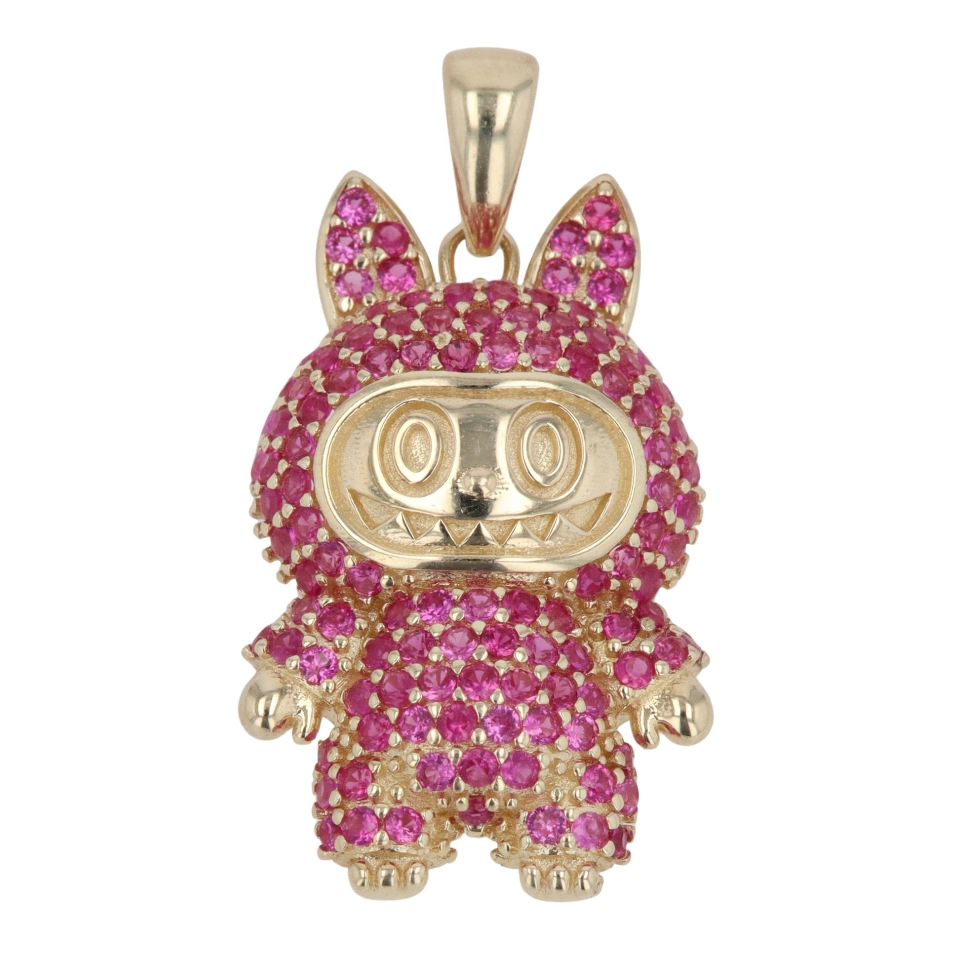 14ct Yellow Gold Pink Gemstone Bunny Pendant