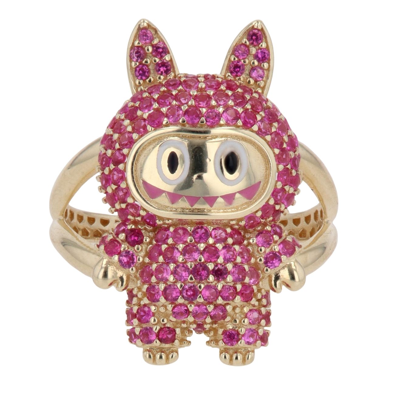 14ct Yellow Gold Pink Gemstone Bunny Ring