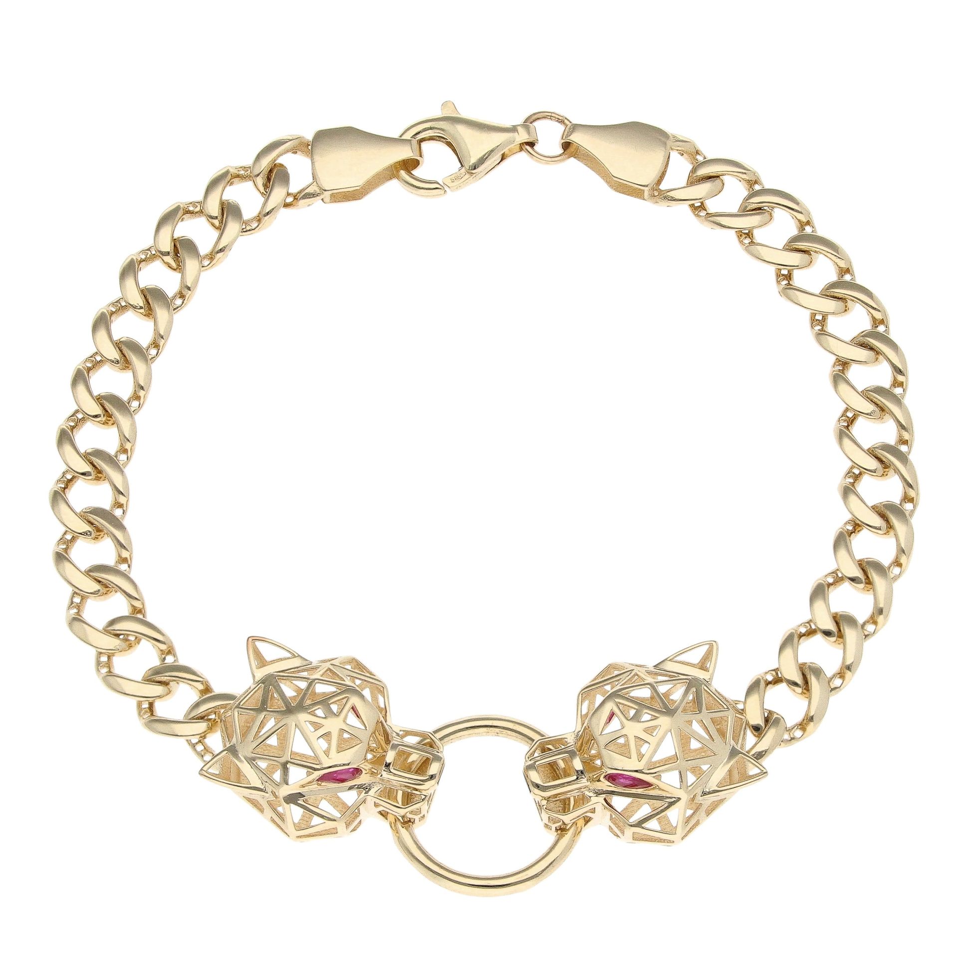 14ct Yellow Gold Pink Gemstone Duo Panther Bracelet 7"
