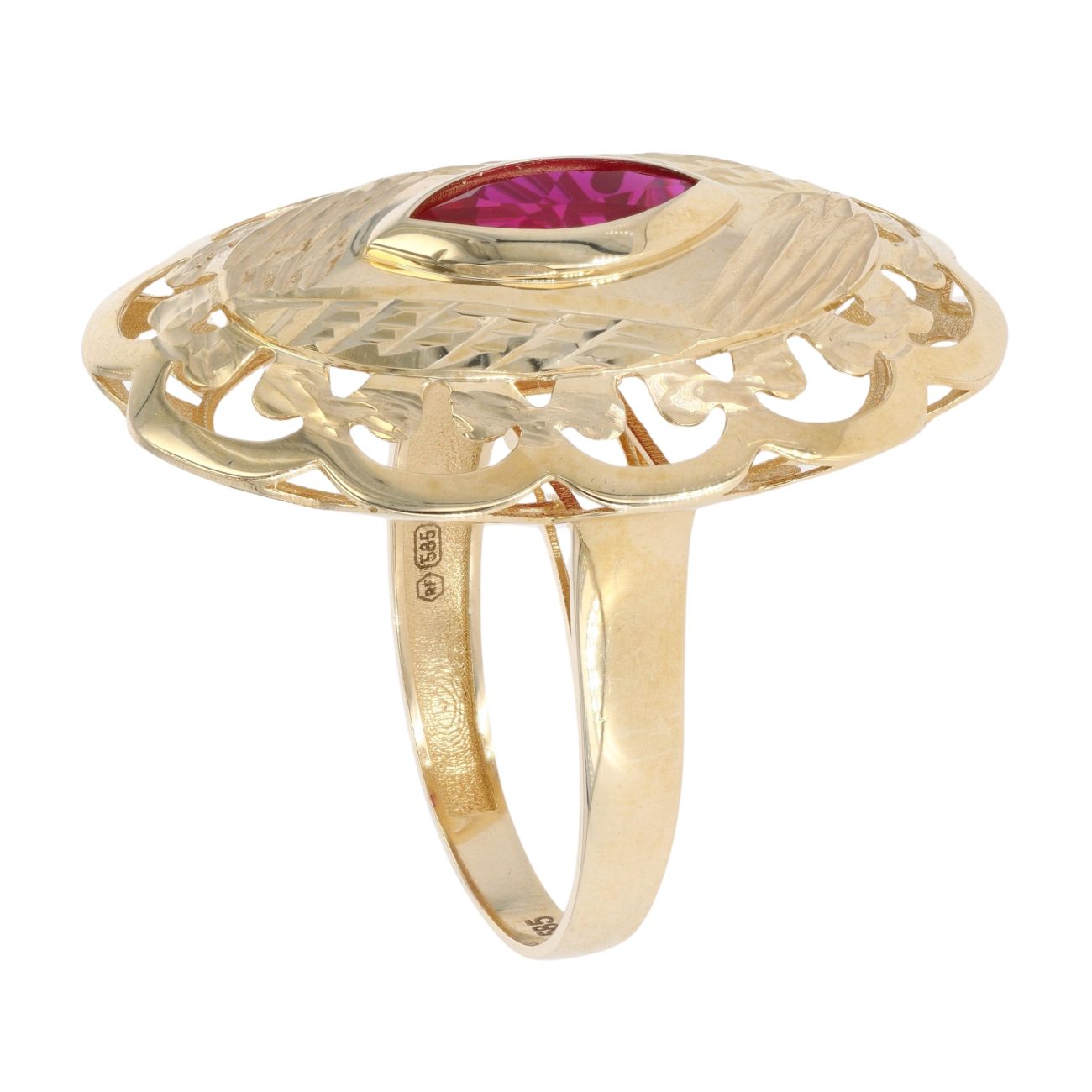 14ct Yellow Gold Red Gem Patterned Ring