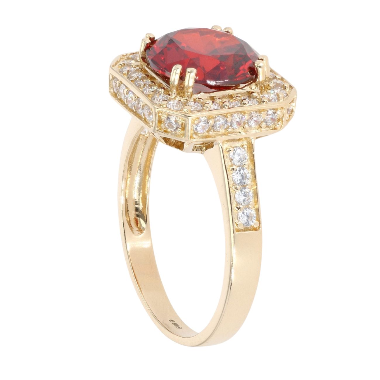 14ct Yellow Gold Red Gemstone And Cubic Zirconia Cluster Ring