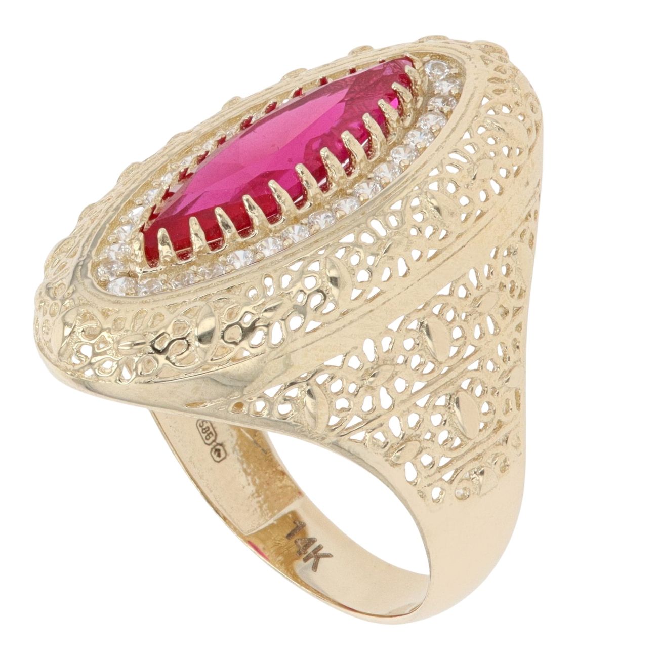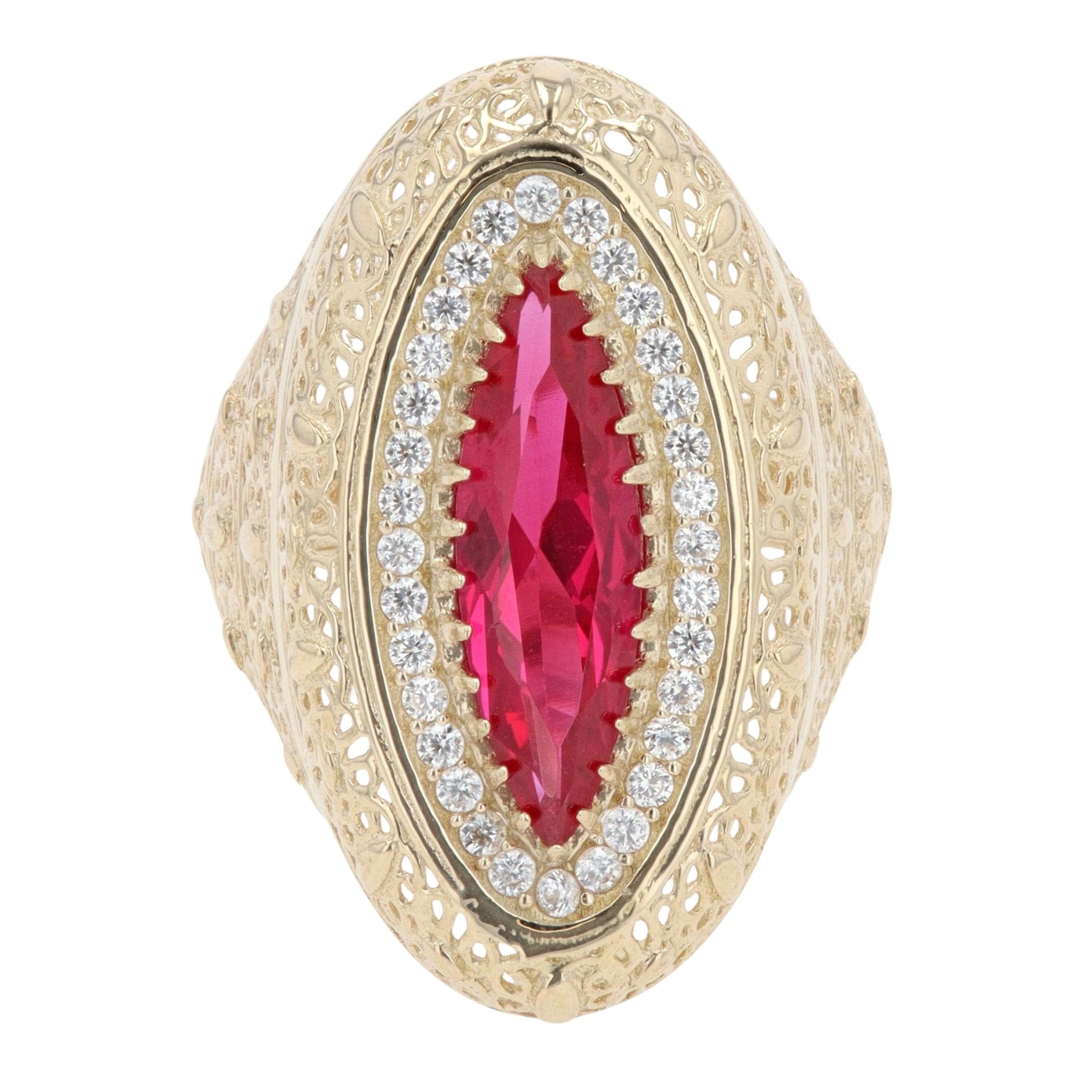 14ct Yellow Gold Red Gemstone And Cubic Zirconia Ring